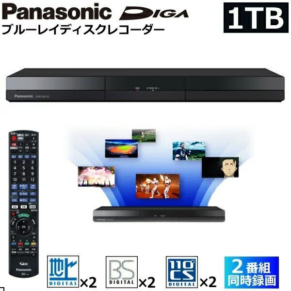 商品説明 | ※スマートフォンの方は「商品説明を読む」を タップすると追加画像が表示されます。 メーカー: Panasonic / パナソニック 型番: ブルーレイディスクレコーダー DIGA 1TB ダブルチューナー DMR-2W102 サイズ(約): 幅430 * 奥行179 * 高さ41.5 mm 付属品:写真に写っている物で全てです。 【仕様・特長】 ■どこでも録画予約 うっかり予約し忘れた番組も、スマホやタブレットで思い出した時にかんたん予約できます。 ■どこでも録画視聴 録画したのに見る時間がない、そんなあなたは録画番組をいつでも・どこでもスマホで見られます。 ■リアルタイム視聴 スポーツ中継などリアルタイムで見たい番組をいつでも・どこでもスマホで視聴できます。 「ドラマ・アニメ1クール自動録画」 約90日間※1のドラマやアニメを自動で録画&消去 ■自動で録画されたドラマ・アニメを約90日間※1お録りおき。 ・ノーマークだったドラマやアニメも、第1話から最終話まで一気に見られる! ・ジャンルと時間帯※3を設定※4すれば、番組をまるごと自動録画してくれる。 ・話題のドラマを見逃していても、約90日間※1お録りおきしているので、第1話から見返せる。 ■好きなジャンル・時間帯から自由に最大2つ※5まで選べます! ・連続ドラマだけでなく スペシャルドラマにも対応! ・お録りおきした番組の中から残したい番組を、自動消去されない領域に保存(ダビング)できます。 かんたん操作で使いやすい ■プレビューサーチ 気になるシーンを画像でかんたんにサーチ。 見どころからすぐに再生することができます。 ■音声付き早見再生(1.3倍/1.6倍) 番組の再生中にリモコンの「再生ボタン」を押すと音声付きで録画番組を1.3倍速もしくは1.6倍速で再生できます。※6 ■他社製テレビ操作モード※7 ボタン1つでディーガとテレビの操作を使い分け。ビエラはもちろん他社製テレビにも対応。 ※1:19時~22時台に放送開始する地上デジタル放送のドラマを設定した場合。お録りおき日数は、1日あたり3時間分の番組を録画した時の日数です。お録りおき録画の設定が必要です。搭載チューナー数を超える同時録画はできません。 ※2:スマートフォンアプリ「どこでもディーガ」(無料)のダウンロードが必要です。iOS13.6以降、Android(TM)6.0以降に対応。サービスのご利用には、CLUB Panasonicへの会員登録(無料)と、インターネットサービス「ディモーラ」への機器登録(無料)が必要です。一部サービスの利用には、「ディモーラ」のプレミアム会員登録(有料)が必要です。 ※3:ジャンルはドラマ/アニメから選択。時間帯は朝/午後/ゴールデンタイム/深夜から選択できます。 ※4:お録りおき設定でドラマ・アニメのお録りおき時間帯を設定できます。 ※5:設定したジャンル/時間帯の組み合わせによって、お録りおき日数は変動します。 ※6:録画や配信などの同時動作の組み合わせによっては、1.6倍早見再生ができない場合があります。 ※7 ・テレビ側でリモコンモードを変更している場合、本機のリモコンでは操作できないことがあります。 ・メーカーと機種によっては、操作できないボタンもあります。 ・設定したテレビのリモコンにないボタンは動作しません。また、機種によってはボタンの名称が異なる場合があります。 ・アイワ、NEC、三洋、JVC/ビクター、富士通ゼネラル製のテレビは[テレビ電源]、[テレビ入力切換]、[チャンネル∧,∨]、[音量+,-]以外は対応していません。 詳しくはメーカー公式サイトをご覧ください。 管理用: H |