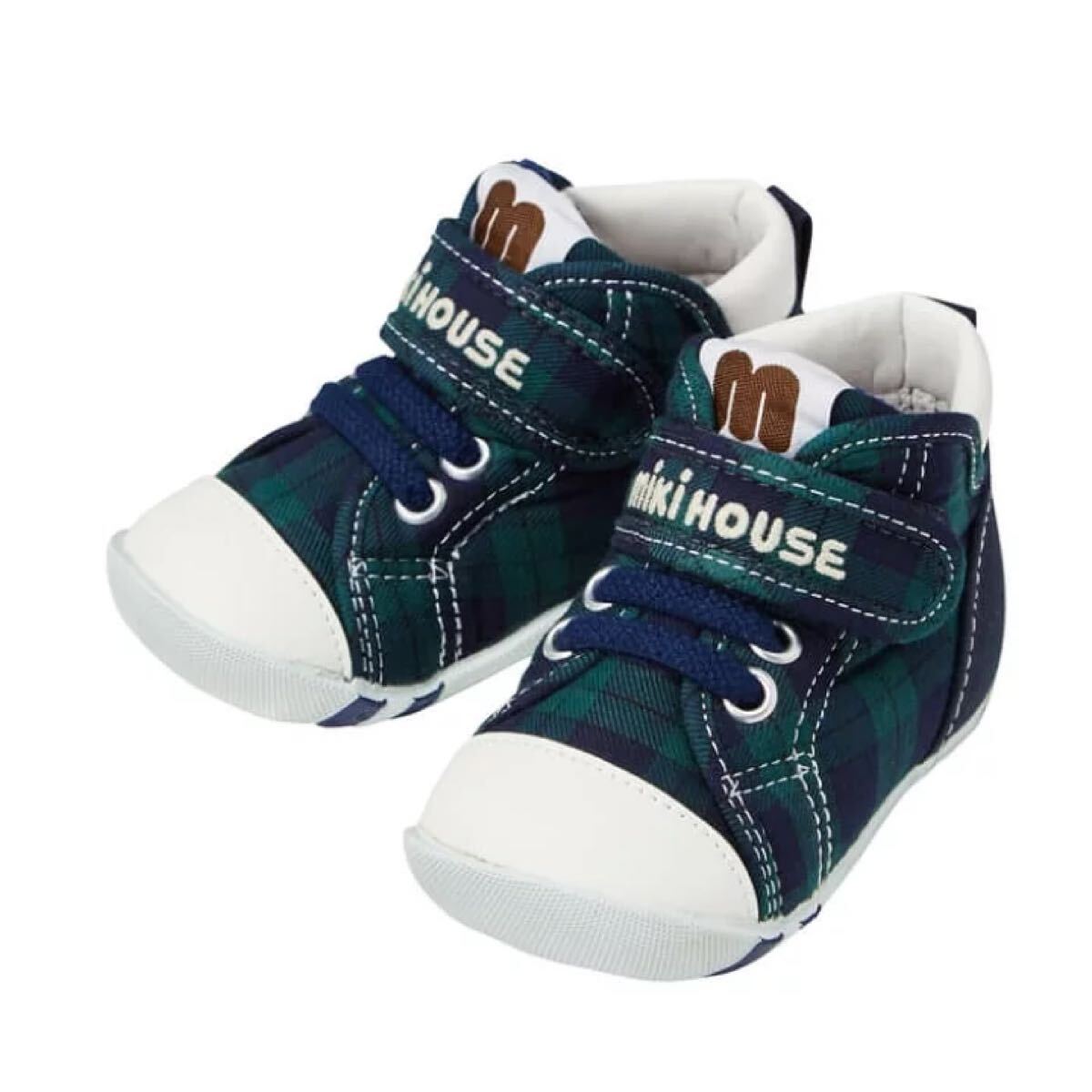 秋服にも相性の良い緑と紺のチェックスニーカーです。