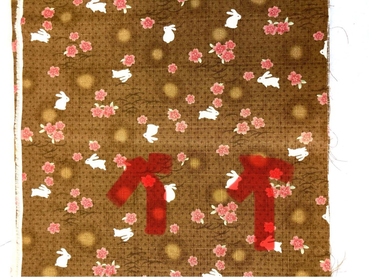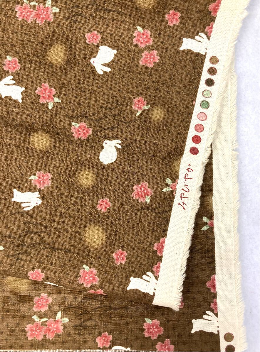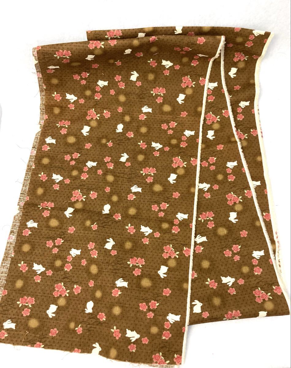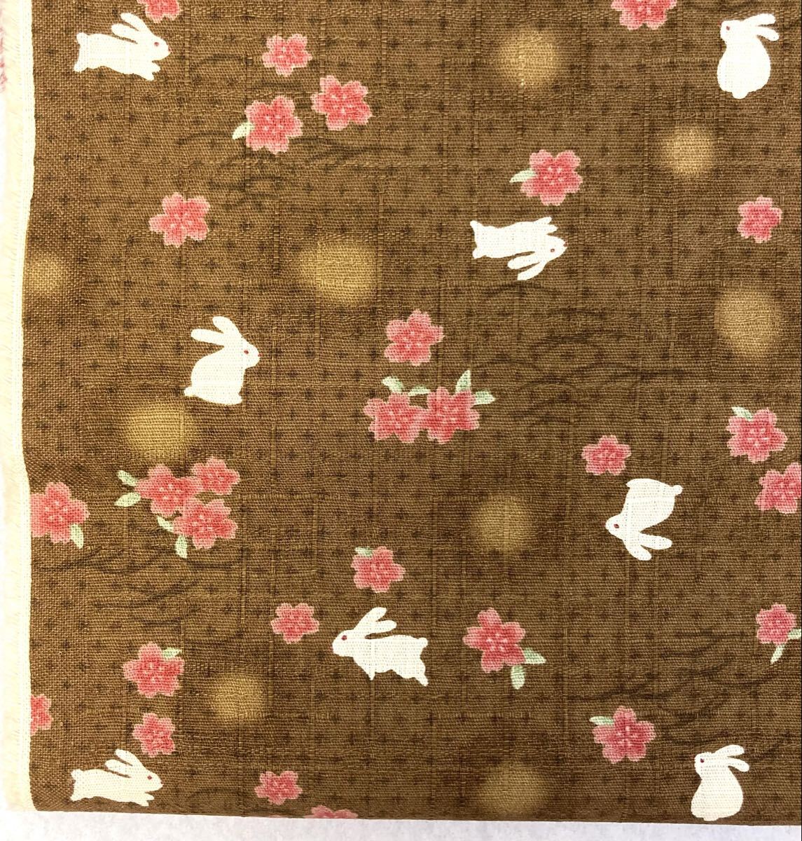 送料無料♪はぎれ!難あり!  C100% 和調*ぼかし玉うさぎ花柄 ブラウン系* 幅27cm×丈3m    光賀堂 CHA-CA.