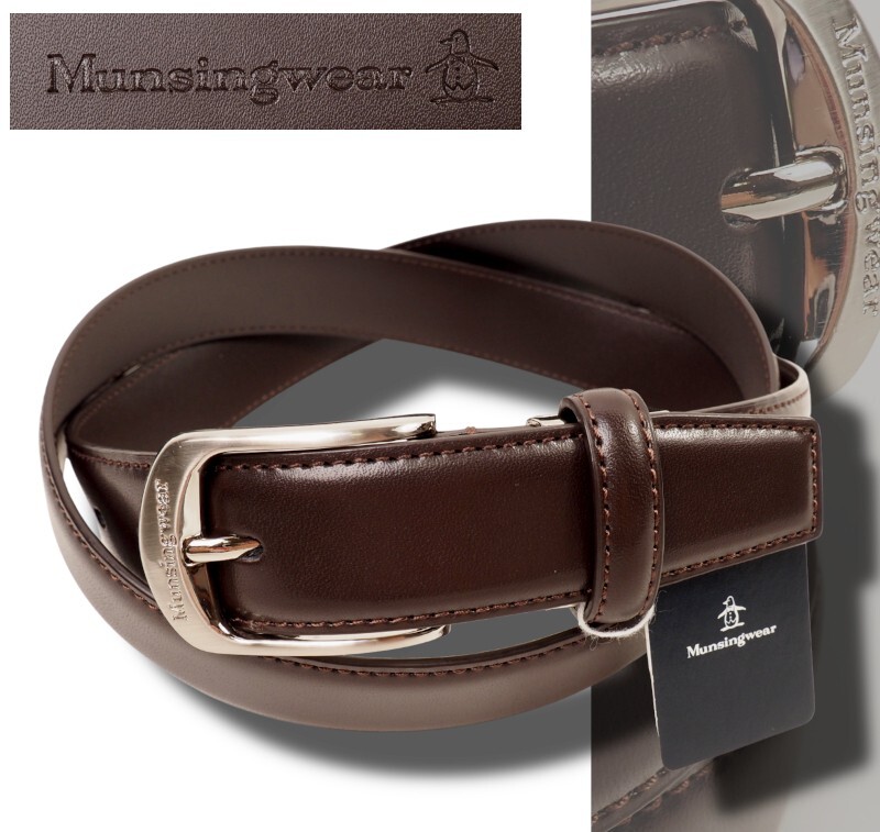 新品正規 Munsingwear マンシングウェア ゴルフ メタルバックル レザー ベルト 濃茶 090902