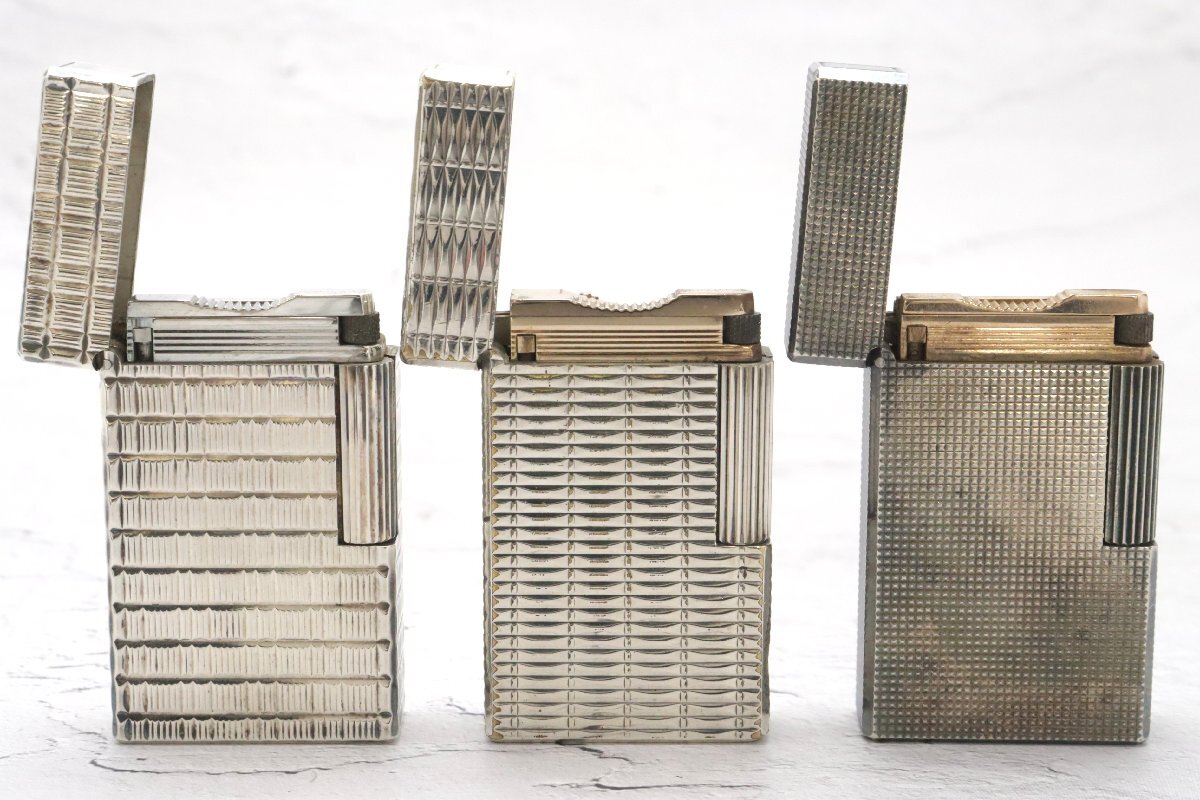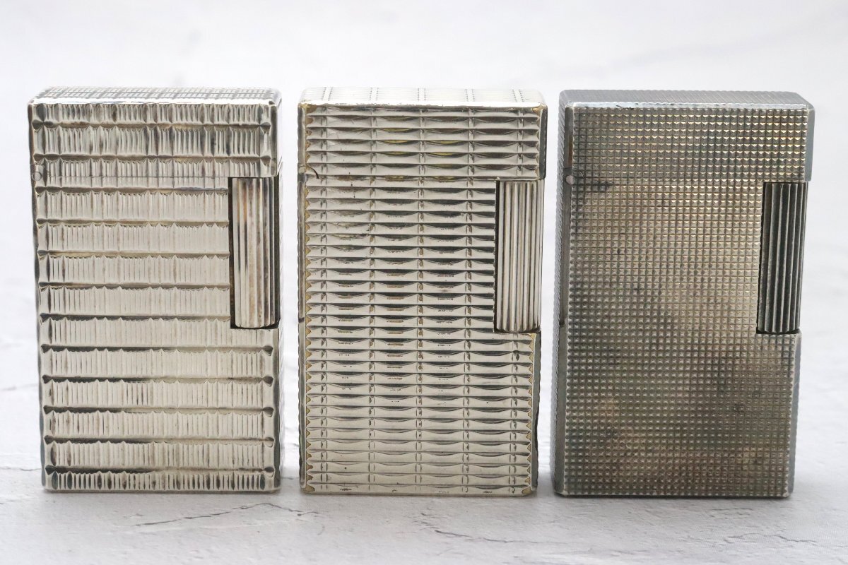 デュポン☆Dupont ライター3点 ライン1 シルバー ※火花確認済 ◆おたからや【C-LI02139】