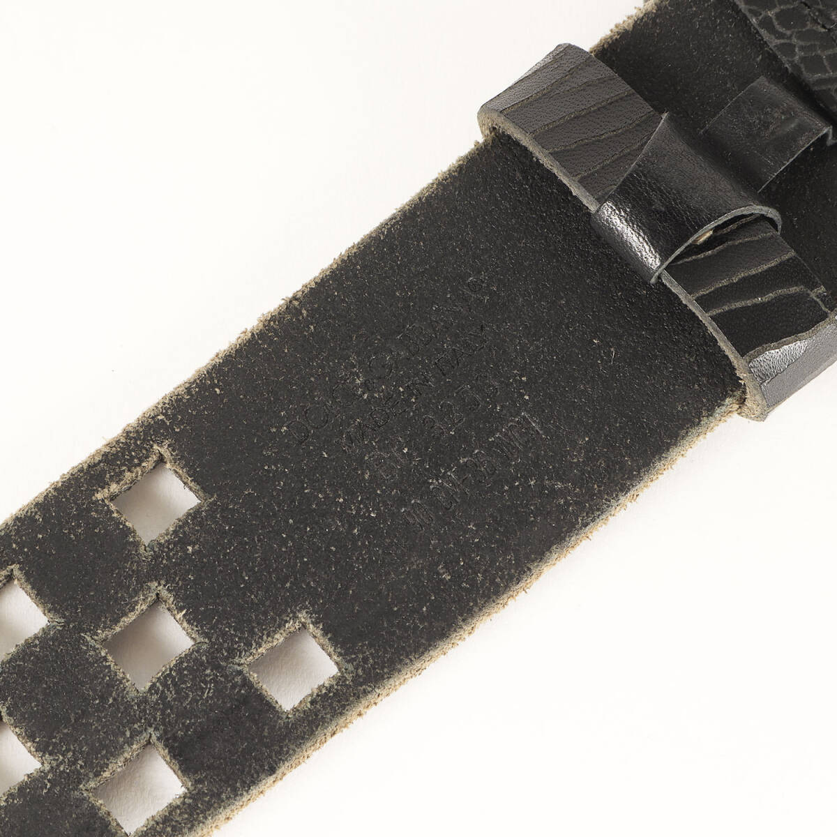 【ブランド名】DOLCE&GABBANA(ドルチェ&ガッバーナ) 【品番】BC 3256 【素材】レザー 【商品説明】 ・クラック加工レザー地 ・スクエア型パンチングデザイン ・ブランドロゴ刻印変型バックル 【カラー】ブラック 【サイズ】90CM-36INCH 全長(バックル含む):約106.5cm×幅約4cm バックル:縦約5cm×横約9cm 【状態】A.美中古 【付属品】箱 保存袋 カード ![]() ※色がある場合、モニターの発色の具合によって実際のものと色が異なる場合があります。 お問い合わせに関しましてはメールのみでのご対応とさせていただいておりますのでご了承下さいませ。 |