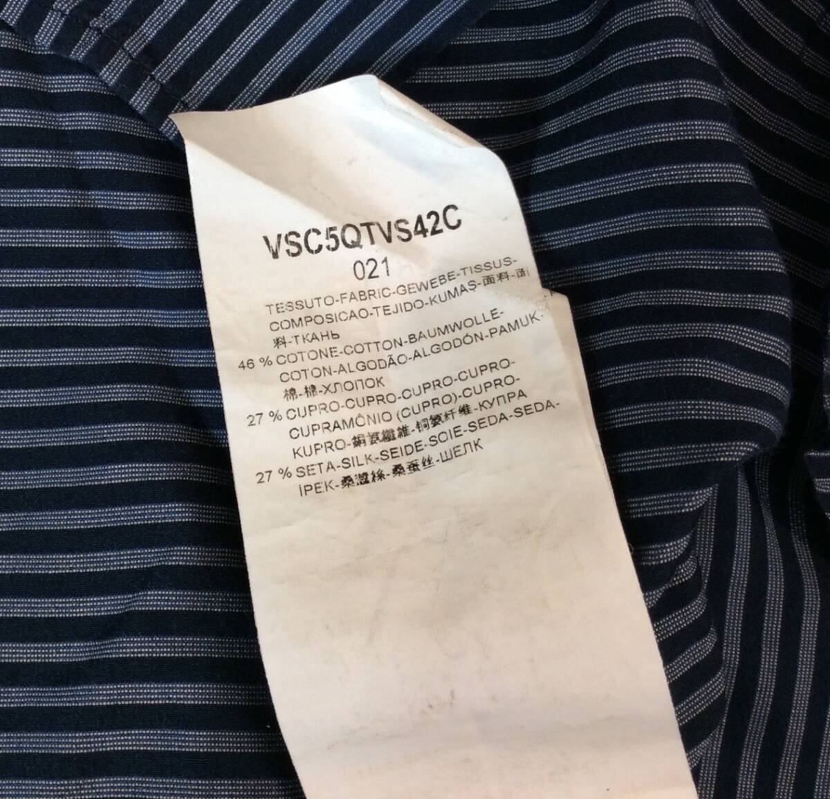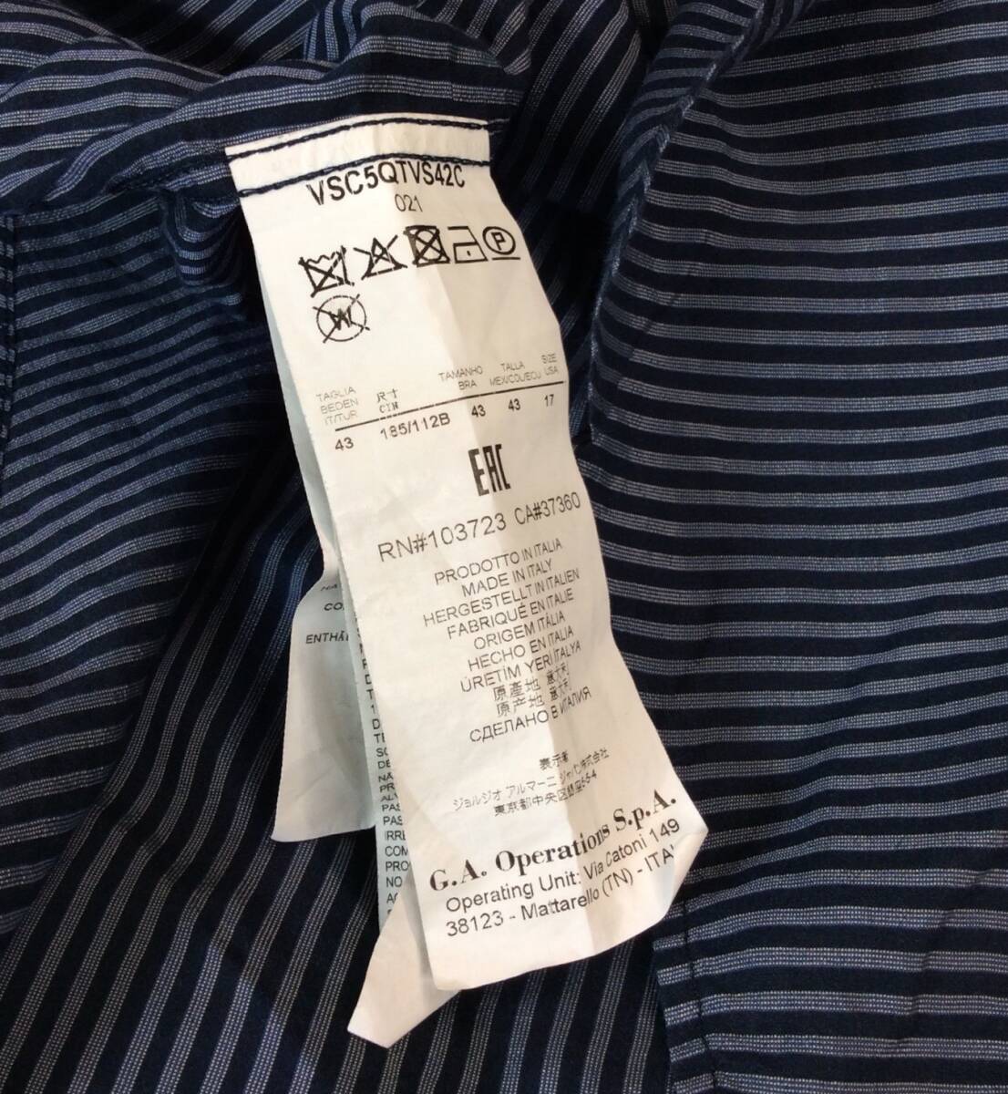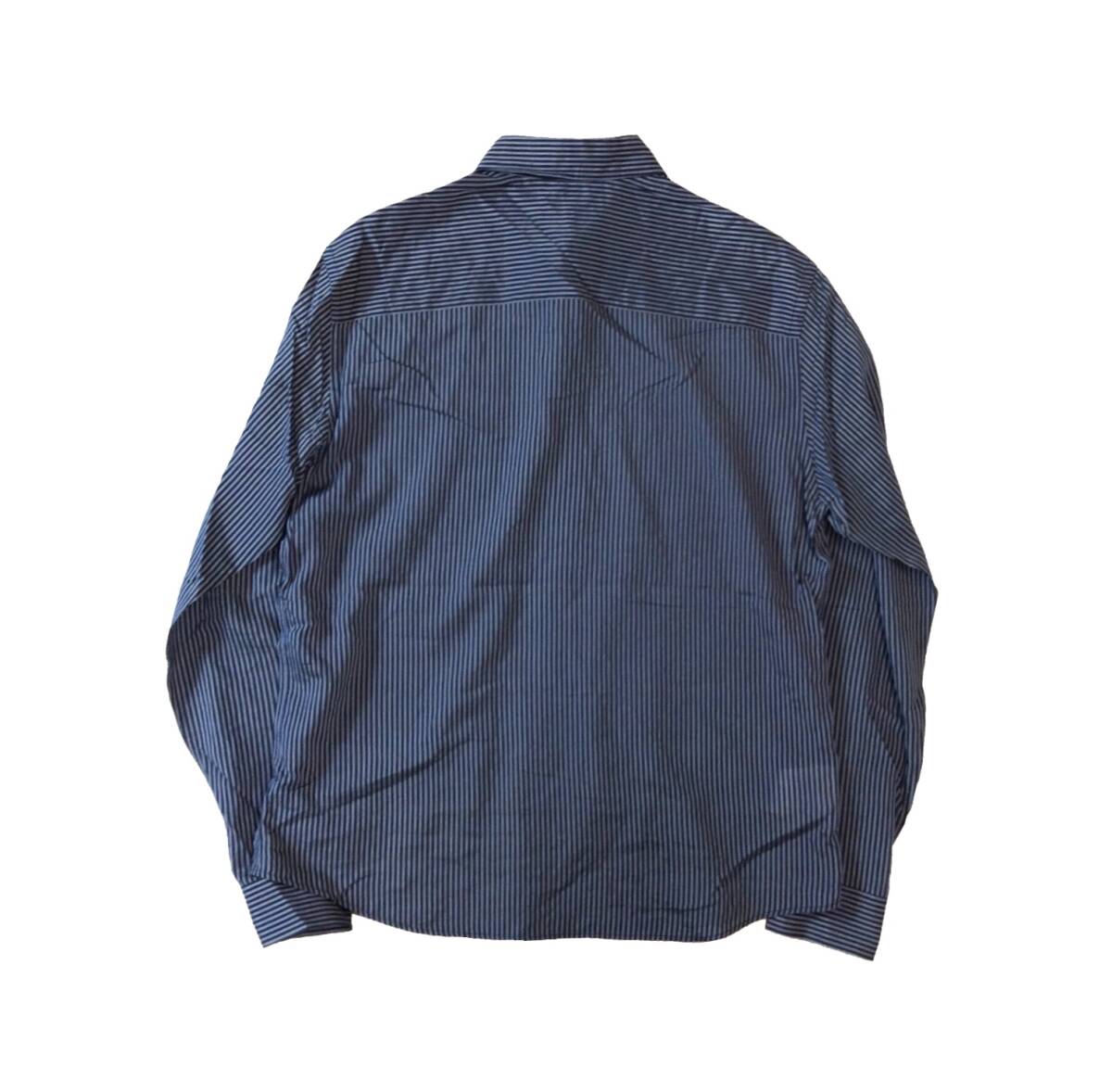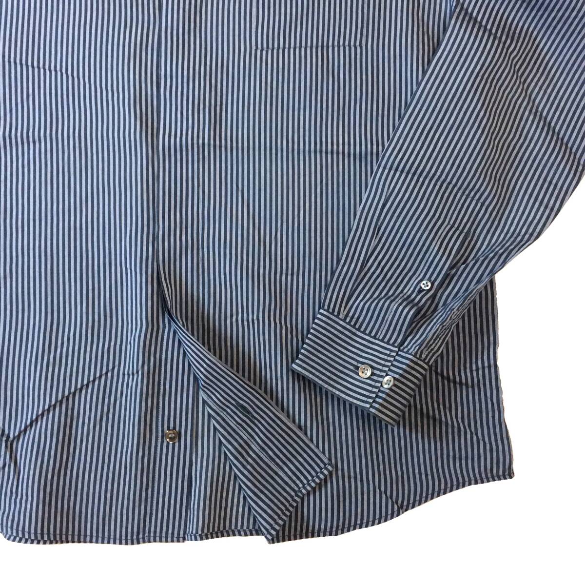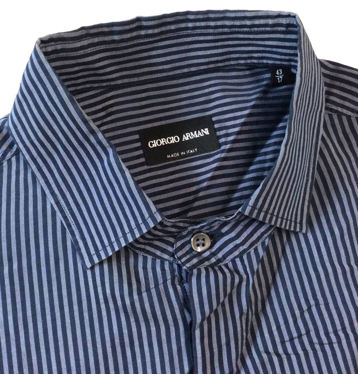 GIORGIO ARMANI ジョルジオアルマーニ イタリア製 ストライプ 長袖 シャツ 隠しボタン ネイビー系 薄手 メンズ 43/17 送料250円