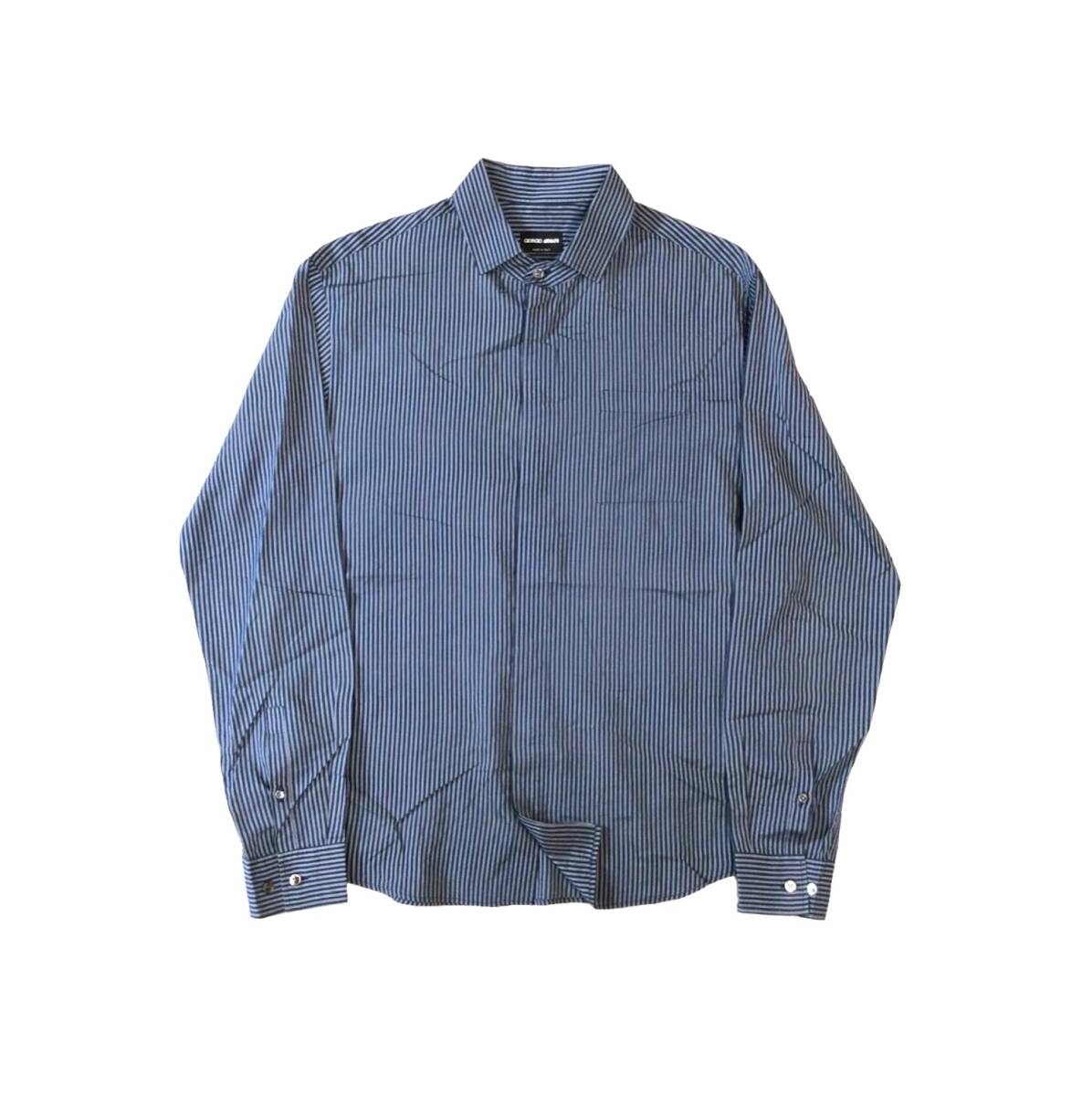 GIORGIO ARMANI ジョルジオアルマーニ イタリア製 ストライプ 長袖 シャツ 隠しボタン ネイビー系 薄手 メンズ 43/17