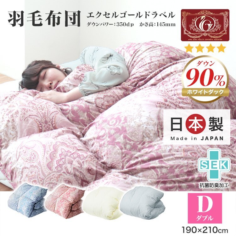 \ もう手放せない、軽くてあったかな寝心地 / 布団に入るのが楽しみになる! 日本羽毛製品協同組合より、最高級の素材と縫製技術の証「エクセルゴールドラベル」の認定を得た 安心・高品質の 日本製 羽毛布団 です。 \ふっくら、清潔で高品質の羽毛/ ■ホワイトダックダウン90% ■業界高水準の洗浄度1000mm ■ダウンパワー350dp以上 ■かさ高145mm ■国内パワーアップ加工 \側生地にもこだわりポイント/ ■30マス立体キルト加工で、身体を包み込むようにフィット!暖かさを逃さない。 ■超軽量TTC生地を採用。保温力に優れ、ふんわり軽やかな掛け心地 ■やわらかく、なめらかな肌触りのピーチスキン ■羽毛の飛び出しを防ぐ、二重縫製&ダウンプルーフ加工 ■布団とカバーをしっかり固定する便利なカバーループ付き \安心の抗菌・防臭・防ダニ加工済/ ■SEKマーク取得 ■オゾンクリーン加工 ボリュームたっぷり!厳選された高品質の羽毛をふんだんに使用しているので、 軽くて、暖かく、包まれるような寝心地です。 【商品コード】RY03BL 【仕様】 カラー:ブルー サイズ(約):幅190cm×長さ210cm(ダブルサイズ) 重量(約):2.4kg (充填量1.4kg) 素材: 側地:ポリエステル85%、綿15% 詰め物:ホワイトダックダウン(ダウン90%、フェザー10%) 【注意事項】 ・サイズは全て外寸になります。 ・羽毛は天然素材のため、無臭ではございません。 原毛は洗浄によりほとんど臭いを感じないようにはしておりますが、 開梱直後や温度・湿度等の環境等により臭いを感じる場合がございますので、 開封直後には風通しの良い場所での十分な陰干し等をお勧めいたします。 なお、天然羽毛の臭いのため人体に害はございませんのでご安心ください。 ・一度開封、使用したもの、匂いなどによる交換返品はお受けすることができませんのでご了承ください。 ・開封する際は、カッターナイフなどで商品を傷付けないよう十分ご注意ください。 ・商品は、モニターによって色合いが異なって見える場合があります。 ・仕様・デザインは改良のため予告なく変更することがあります。 【もちろん新品未使用品です】 ▼検索ワード 羽毛布団 シングルロング セミダブルロング ダブルロング 掛け布団 日本製 ホワイトダックダウン 90% 93% 30マス立体キルト エクセルゴールドラベル ロイヤルゴールドドラベル 暖かい 冬 抗菌 防臭 防ダニ 羽毛 布団 羽毛掛け布団 羽毛 掛布団 掛け布団 洗える 布団 ふとん 掛けふとん 暖かい あったか 冬掛布団 軽い 一人暮らし 新生活 引越し 引っ越し 来客 来客用 春 夏 秋 冬用 オールシーズン 羽毛掛け布団 |