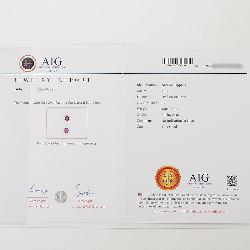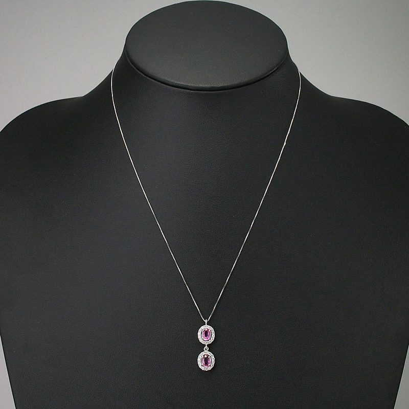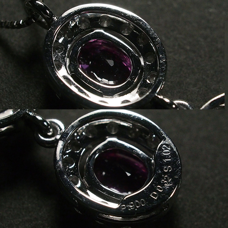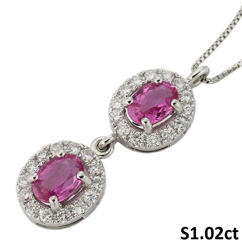 詳細:ノーブランド ノーヒート 非加熱ピンクサファイア/1.02ct ダイヤ/0.32ct Pt900/Pt850 ネックレス 鑑別書付き 仕上済
