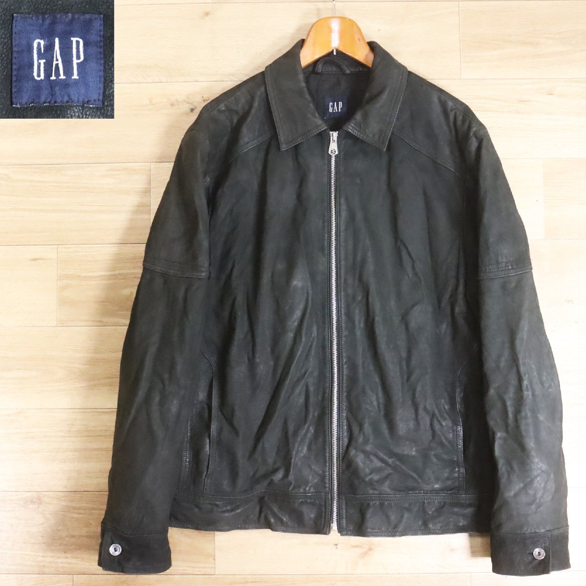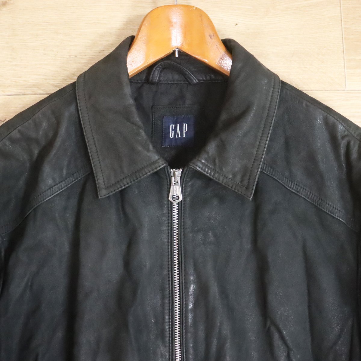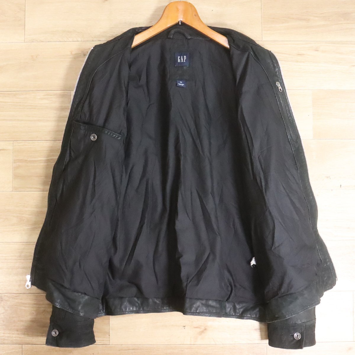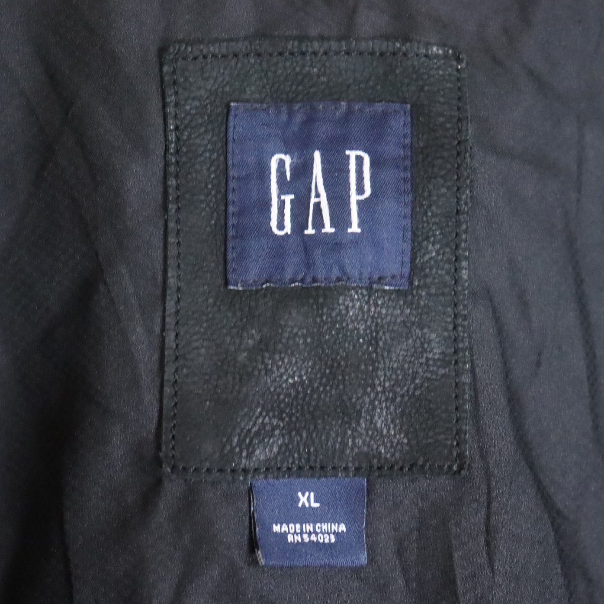 E3S/Y6.19-3 GAP ギャップ シングルライダース 本革 レザージャケット 革ジャン 皮ジャン バイカー メンズ XL ブラック 古着