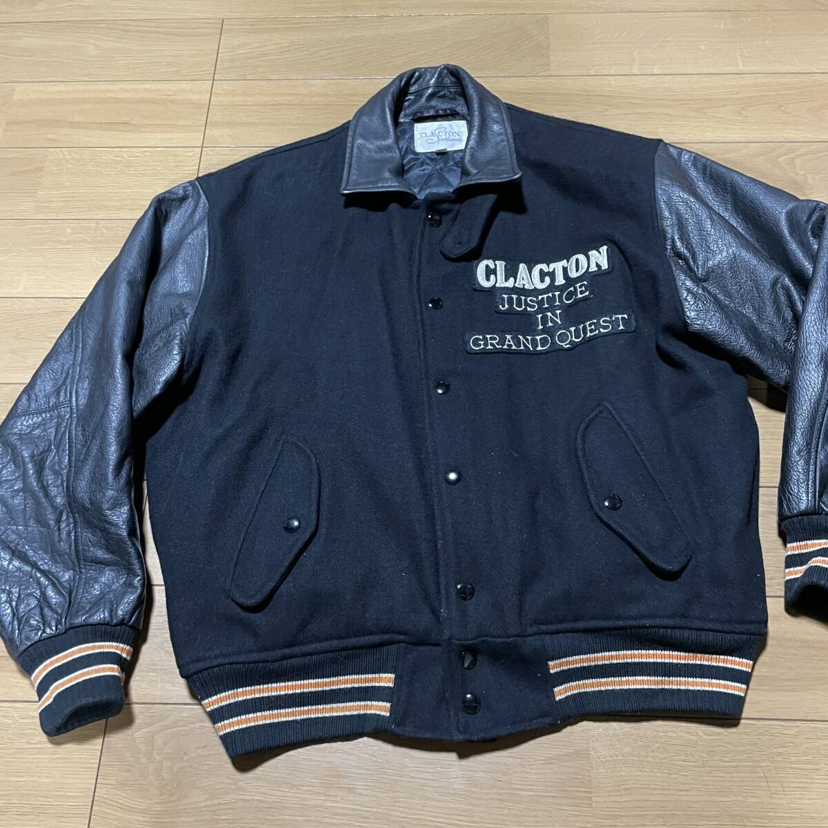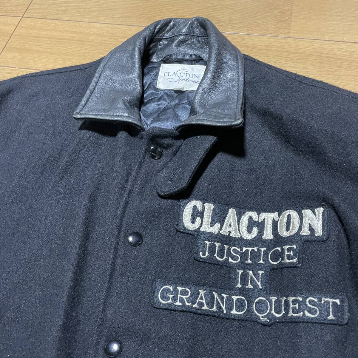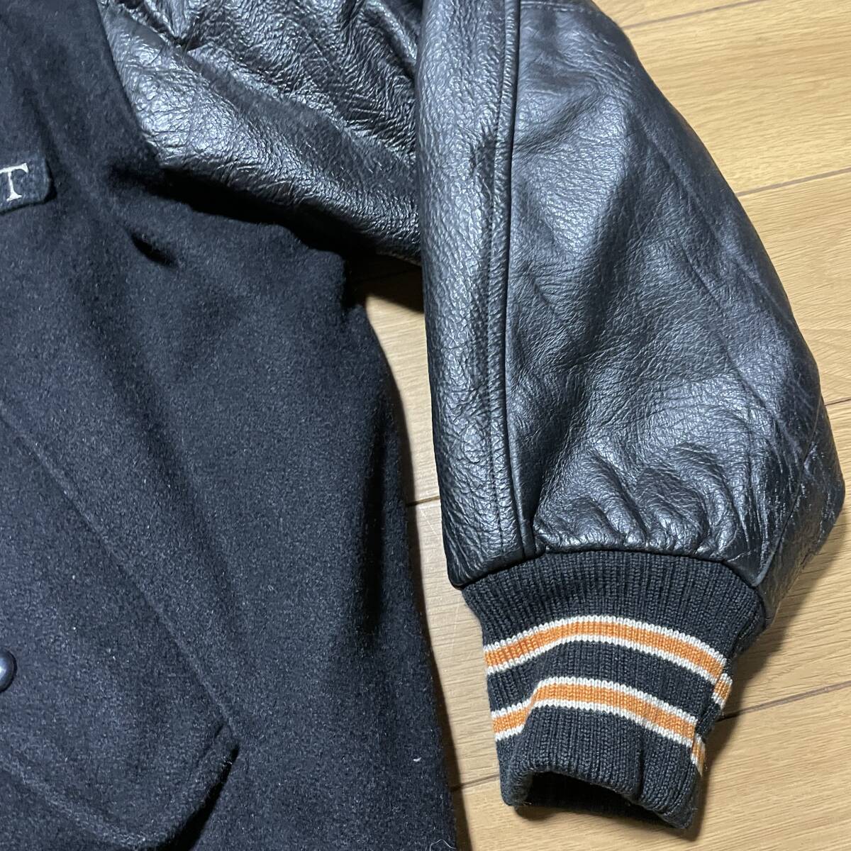 T-12 ●CLACTON サイズ38/黒!袖革=リアルレザー(裏キルティング)スタジャン●