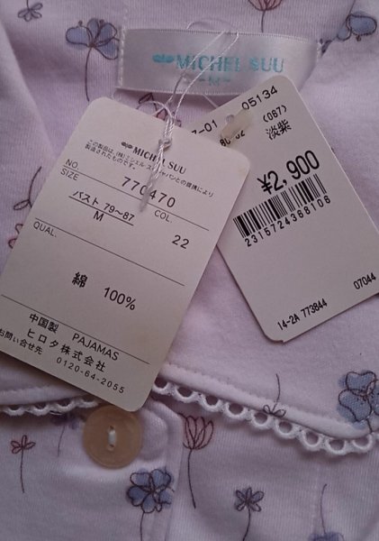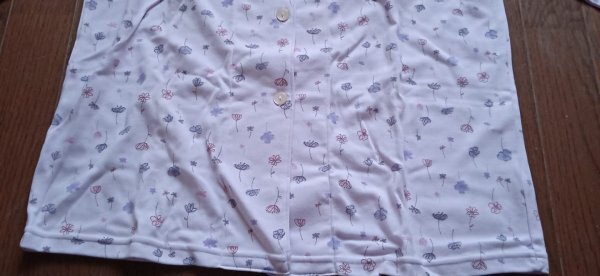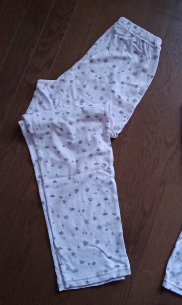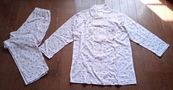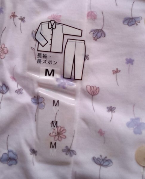 柔らかい生地のMサイズ、花柄の長袖パジャマ。