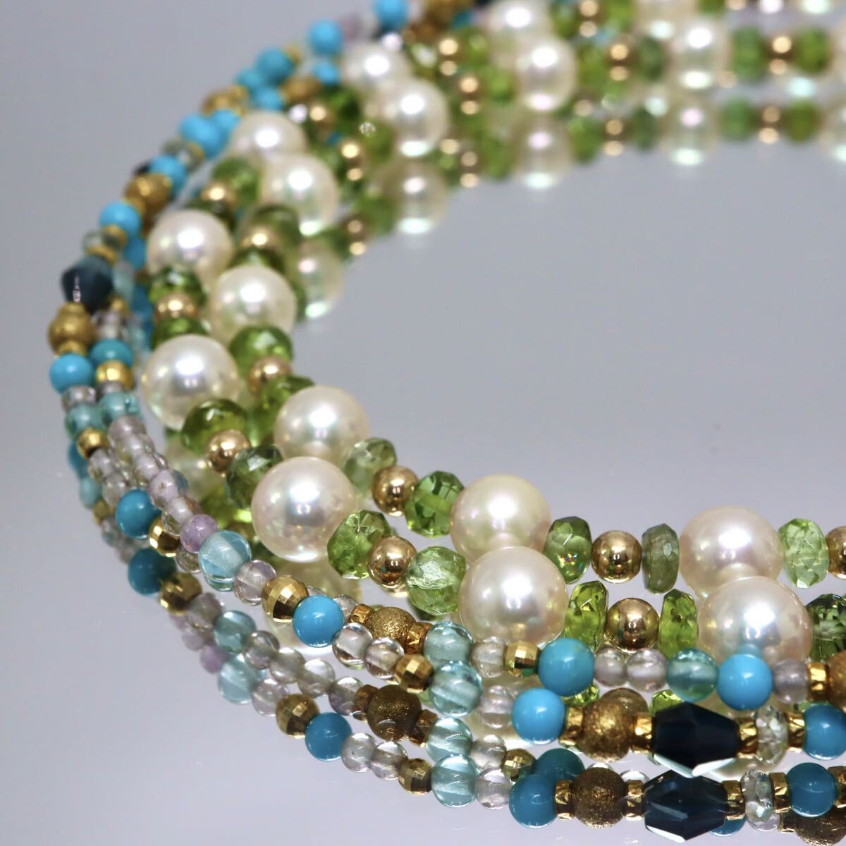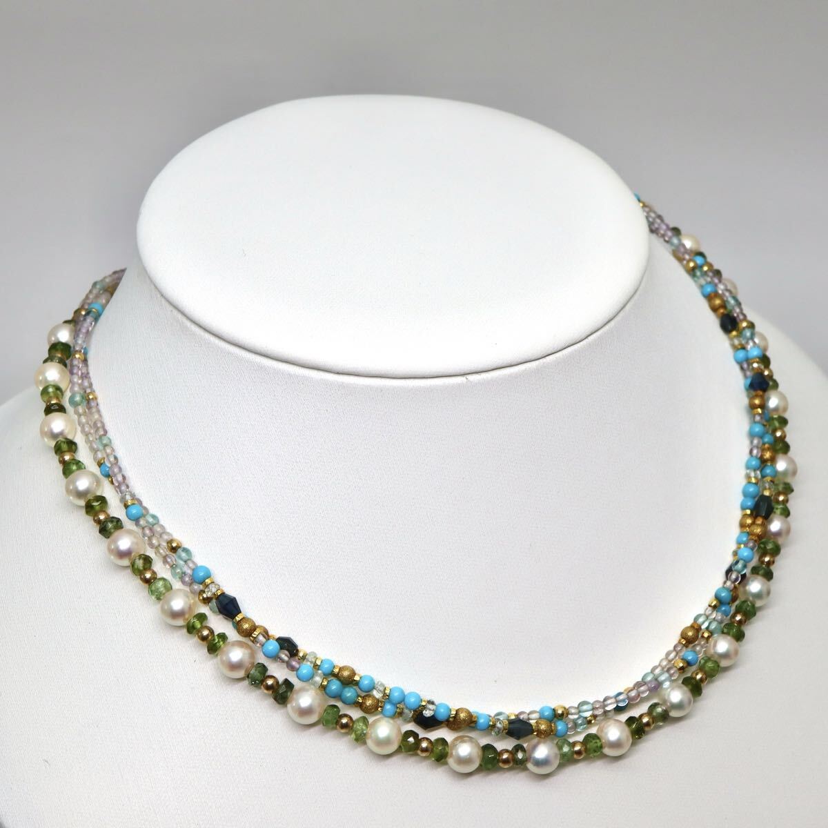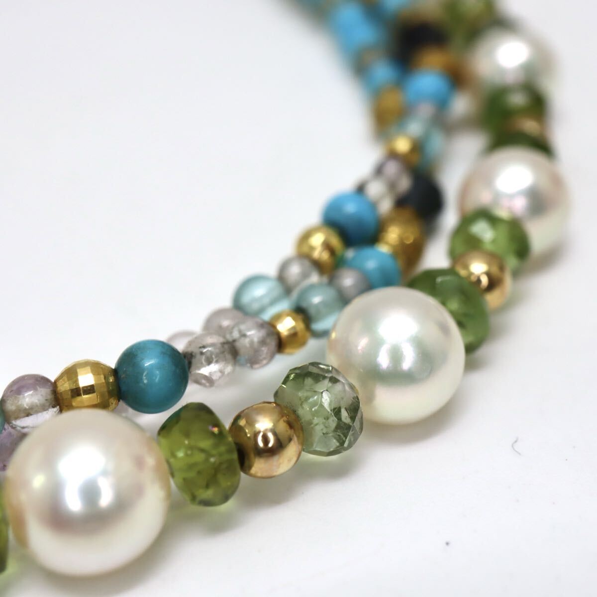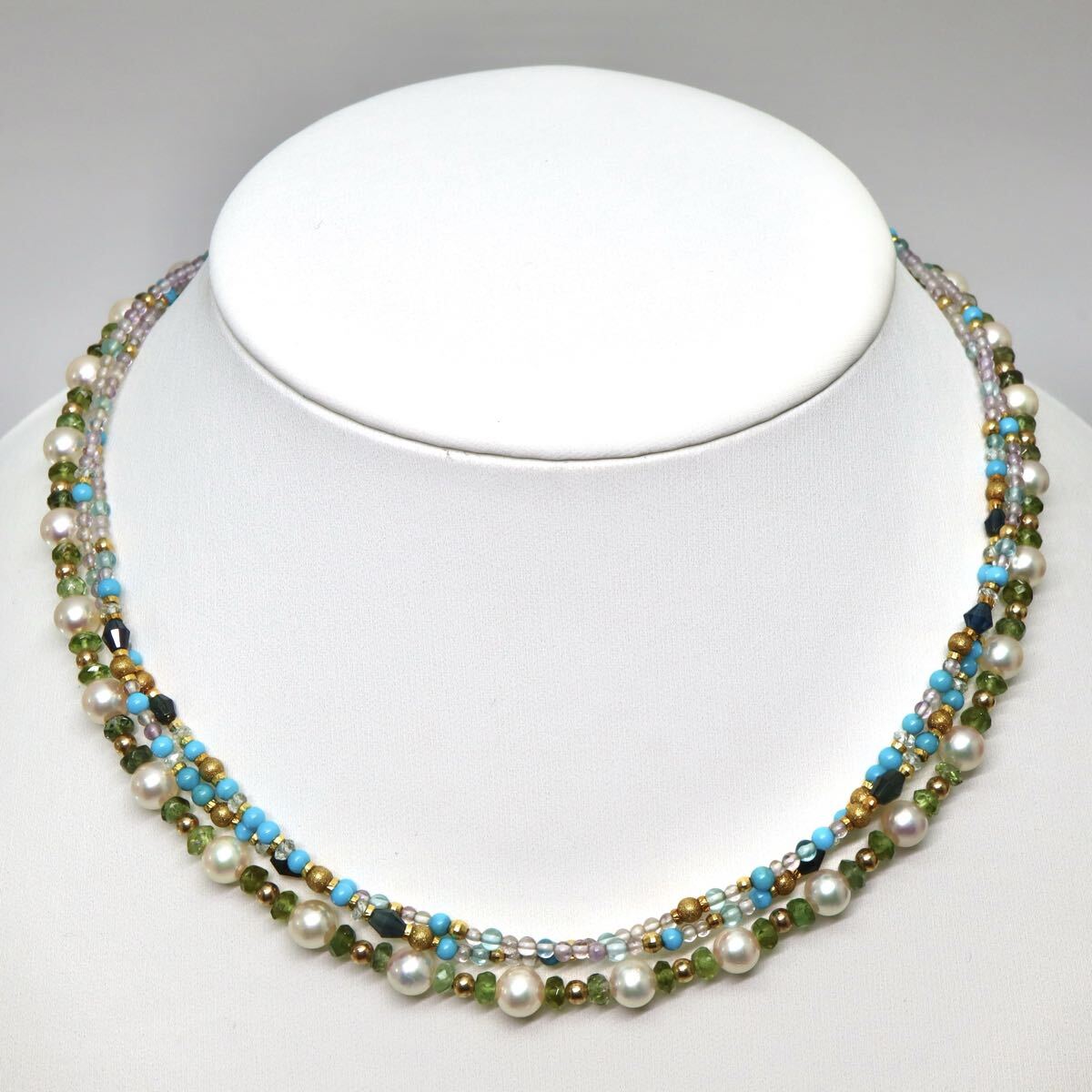 〈アコヤ本真珠&天然石ネックレス2点おまとめ〉