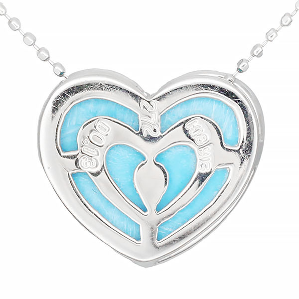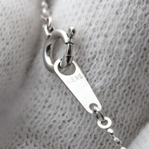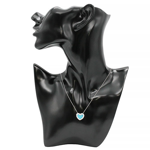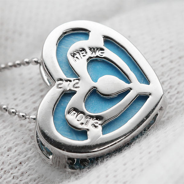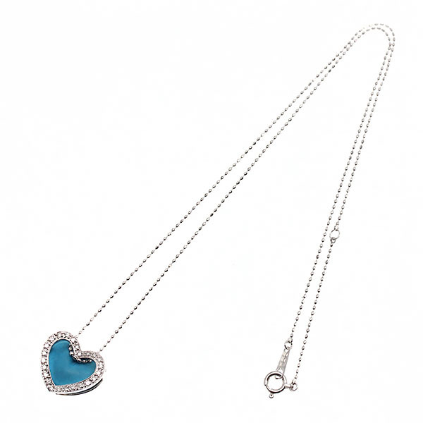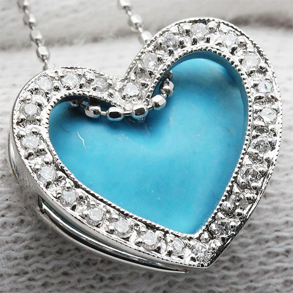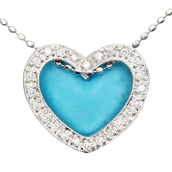 K18ホワイトゴールドにダイヤモンド、ターコイズをあしらった愛らしいハートモチーフネックレス。