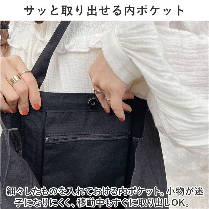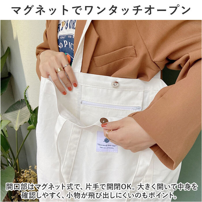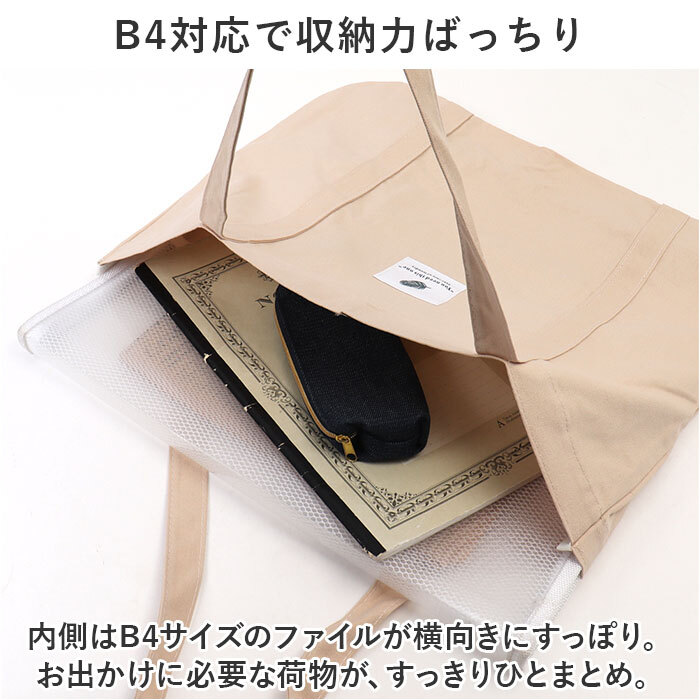 商品説明 | ・・デイリー使いにぴったりな、シンプルデザイン!たっぷり入る「トートバッグ」が新登場。 ・【ナチュラル可愛いデザイン】 ・柔らかなコットン素材を使った、大人カジュアルな仕上がり。フロントのロゴタグがアクセント。 ・【マグネットでワンタッチオープン】 ・開口部はマグネット式で、片手で開閉OK。大きく開いて中身を確認しやすく、小物が飛び出しにくいのもポイント。 ・【B4対応で収納力ばっちり】 ・内側はB4サイズのファイルが横向きにすっぽり。お出かけに必要な荷物が、すっきりひとまとめ。 ・【サッと取り出せる内ポケット】 ・細々したものを入れておける内ポケット。小物が迷子になりにくく、移動中もすぐに取り出しOK。 ・【使い方はあなた次第♪】 ・薄手の生地感で軽やかな使い心地。メインのトートバッグとしてはもちろん、サブバッグやエコバッグ代わりにも。 ・【肩掛けがラクラク】 ・ハンドルは肩に掛けやすい長さに設計。ちょこっと荷物が多くなっても大丈夫。 ・【お気に入りのカラーをチョイス】 ・ベーシックやワンポイントになるカラーをラインナップ。お友達と色違いで揃えるのもおすすめ。 ・【ポケット仕様】 ・内側:ファスナーポケット×1 |