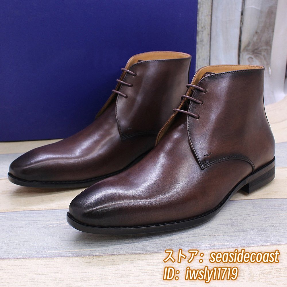 超希少*定価13万 マーティンブーツ レザーブーツ 本革 職人手作り ショートブーツ イギリス風 牛革 エンジニアブーツ 皮靴 珈琲色 24.5cm