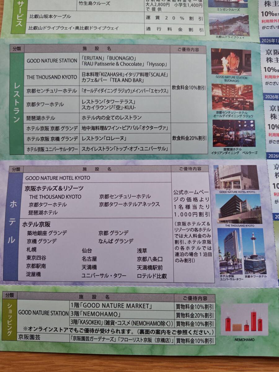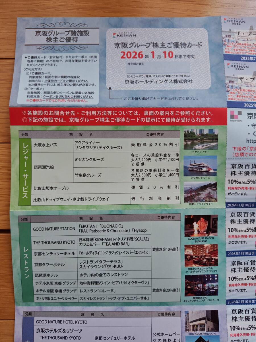 ●京阪百貨店割引券20枚(10%割引または5%割引 )割引除外商品あり