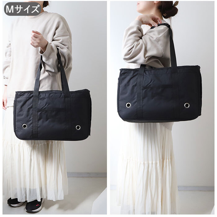 商品説明 | ・・パッと見はシンプルなボックス型トート♪ペットとのお出掛けに便利な2WAYペットキャリー。 ・【通気性の高い安心構造】 ・前後4つの大きな通気孔と、バッグ天面と右側面のメッシュ窓でしっかりと通気性を確保。蒸し暑さの気になる季節でも快適。 ・【ペットの出入りがスムーズ】 ・天面のメッシュ窓は、ダブルファスナーがコの字型に大きく開いて、ペットの出入りが楽ちん。 ・【ペットの様子が見えて安心】 ・中のペットの様子がつぶさに確認でき、ペットからも外が眺められるから、人見知りのワンちゃん・ネコちゃんもリラックス。 ・【小窓には目隠しフラップ付き】 ・右側面のメッシュ小窓は、暑さが気になる季節にはフラップをクルっとロールアップ。外の視線が気になる時にはクローズすることが可能。 ・【飛び出し防止ストラップ】 ・バッグ内側には、リードとつなげるフック付きバンドストラップを搭載し、ペットの急な飛び出しを防止! ・【姿勢が安定してリラックス】 ・移動中にバッグが型崩れしにくく、ペットが安定した状態でくつろげる底敷き板付き。 ・【小物用ポケットも装備】 ・バッグの左側面には、お気に入りのおやつやマナーウェアの持ち歩きに便利なメッシュポケット付き。正面のオープンポケットは、飼い主さん用の小物入れにしてもOK! ・【肩掛けもできるハンドル】 ・ハンドルは、サッと肩掛けにしやすい長さに設計。持ち運び時に手のひらに負担の掛かりにくいハンドルカバー付き。 ・【ペットに合わせて選べる3つのサイズ】 ・・ネコちゃんから中型犬まで、ペットの身体の大きさに合わせてチョイスできる、S・M・Lの3タイプ。(※推奨体重・・・Sサイズ:3kgまで、Mサイズ:6kgまで、Lサイズ:9kgまで。推奨体重は目安です。) ・【使わない時はコンパクトに】 ・お出掛けしない時は、スリムに折りたたんで場所をとらずに収納可能! ・【お出掛けが楽しくなるデザイン】 ・杢調生地に黒のメッシュを合わせた、外出先でも目立ちにくいデザイン。ペットと一緒の旅行や動物病院へのお出掛けに最適。(※ブラックのみ、格子状のリップストップ生地を使用しています。) |