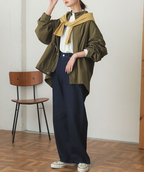 ・ショート丈でも後ろはヒップが隠れる丈なので合わせやすいブルゾンです。