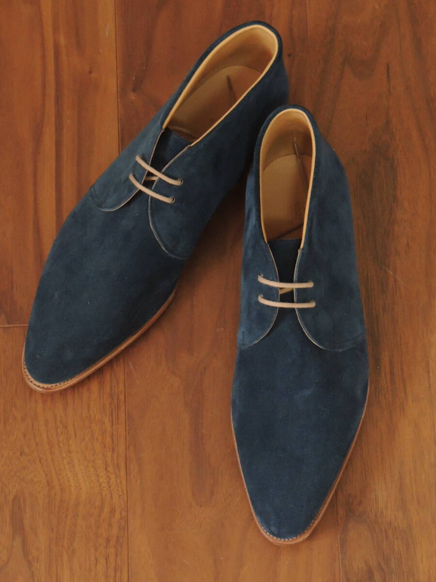 目の覚めるような味わい深いブルーのスウェードはジョンロブのコレクションの中でもひと際目立っていました。