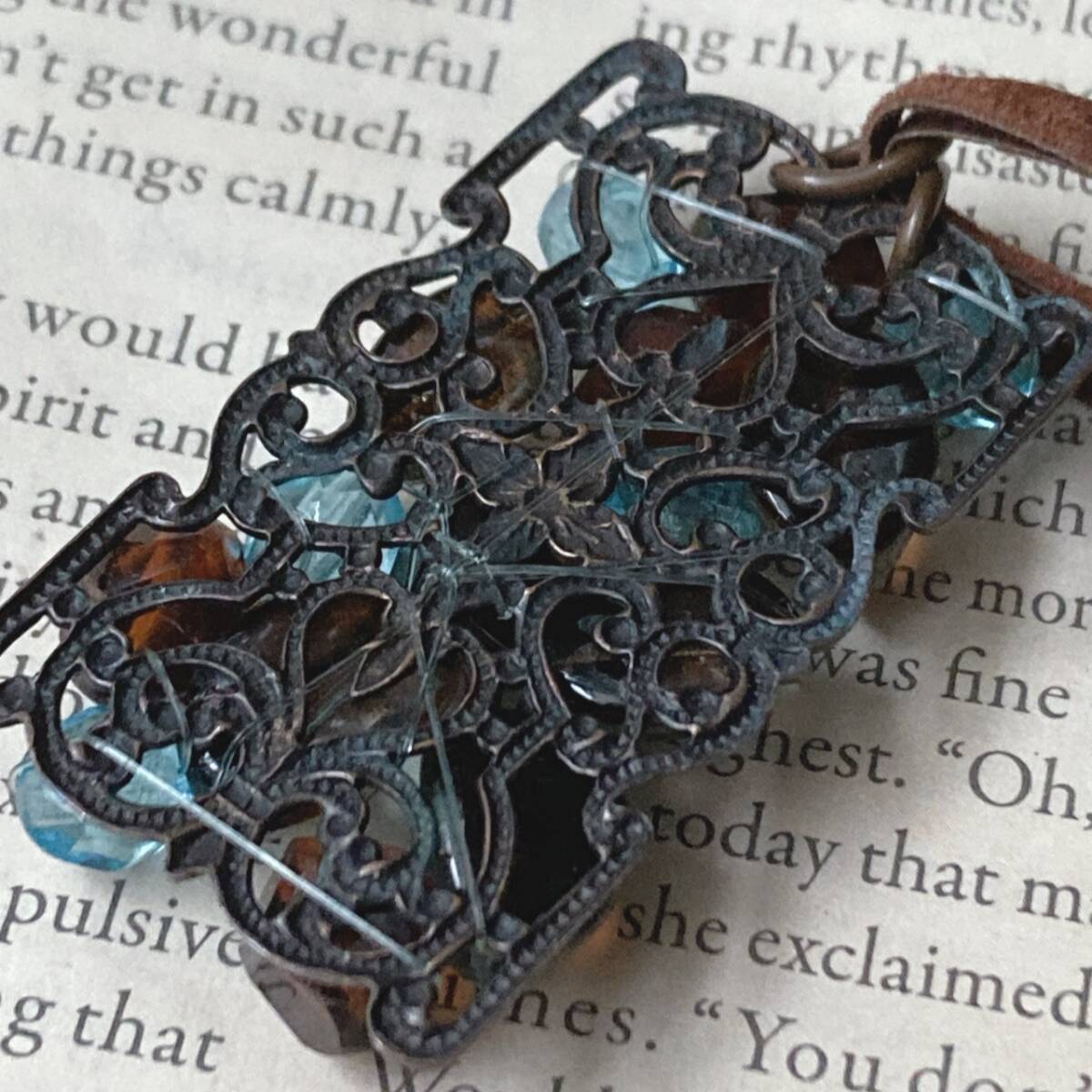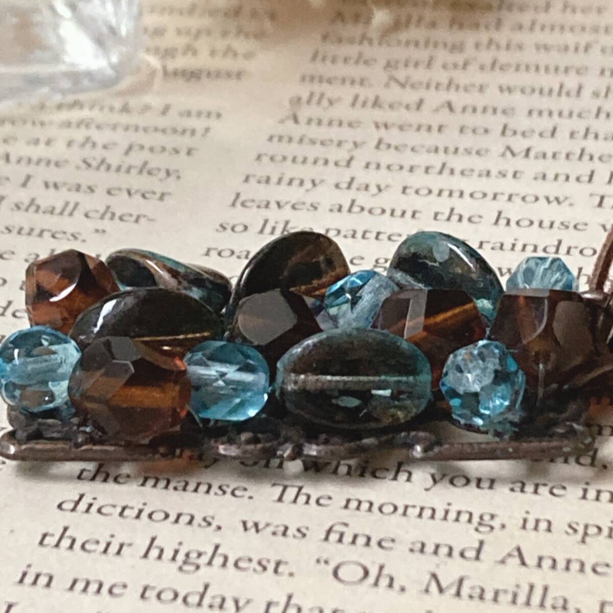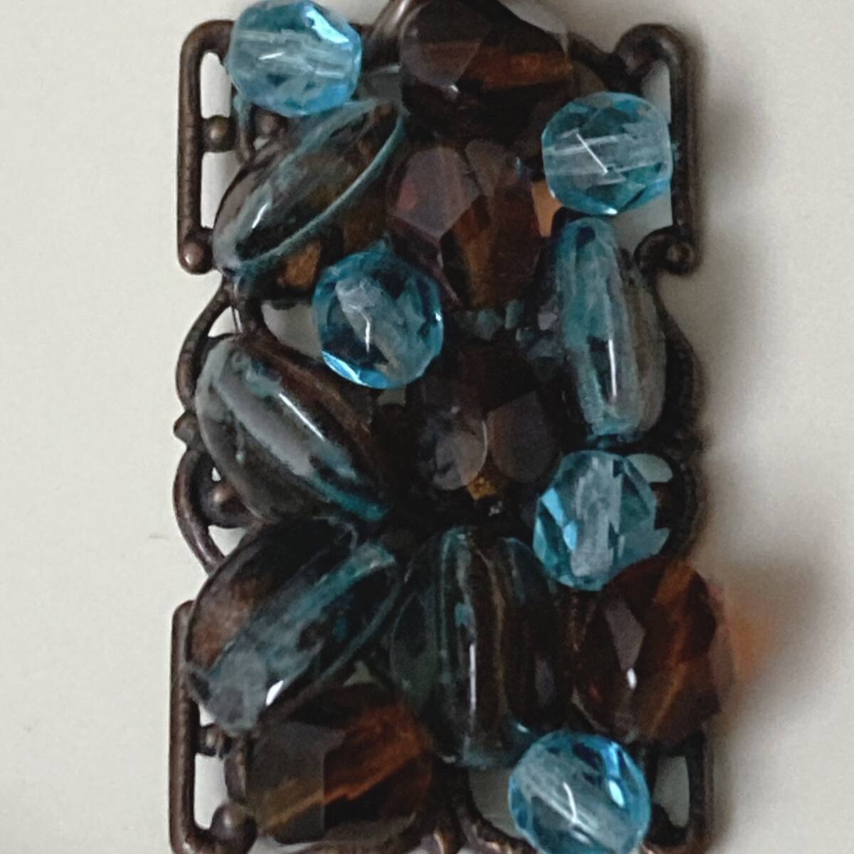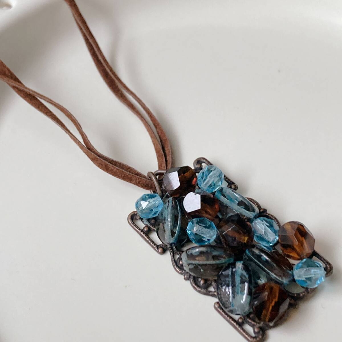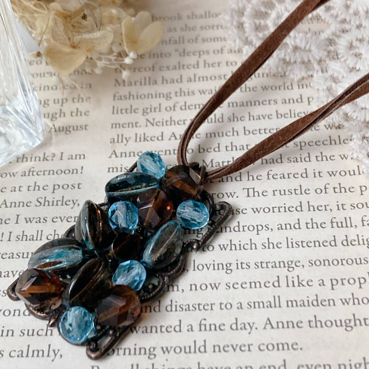 ヴィンテージネックレス Jean Andre イタリア製 プレート ビーズ ブルー ブラウン アンティーク☆Vintage jewelry accessoriesF0278