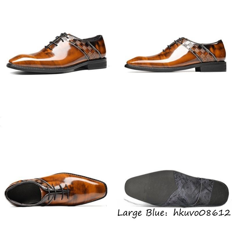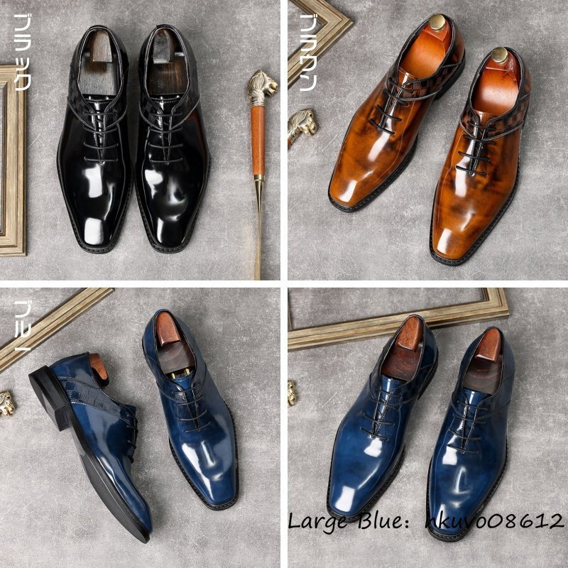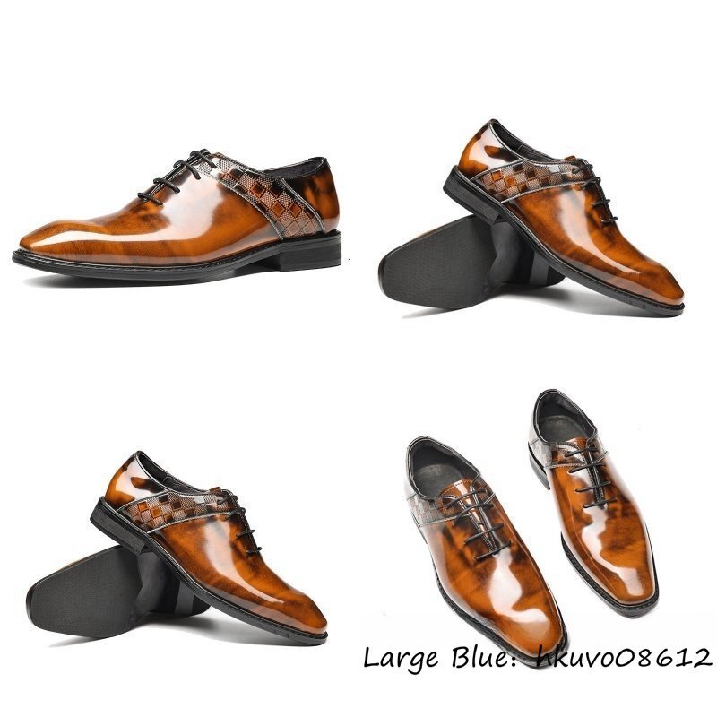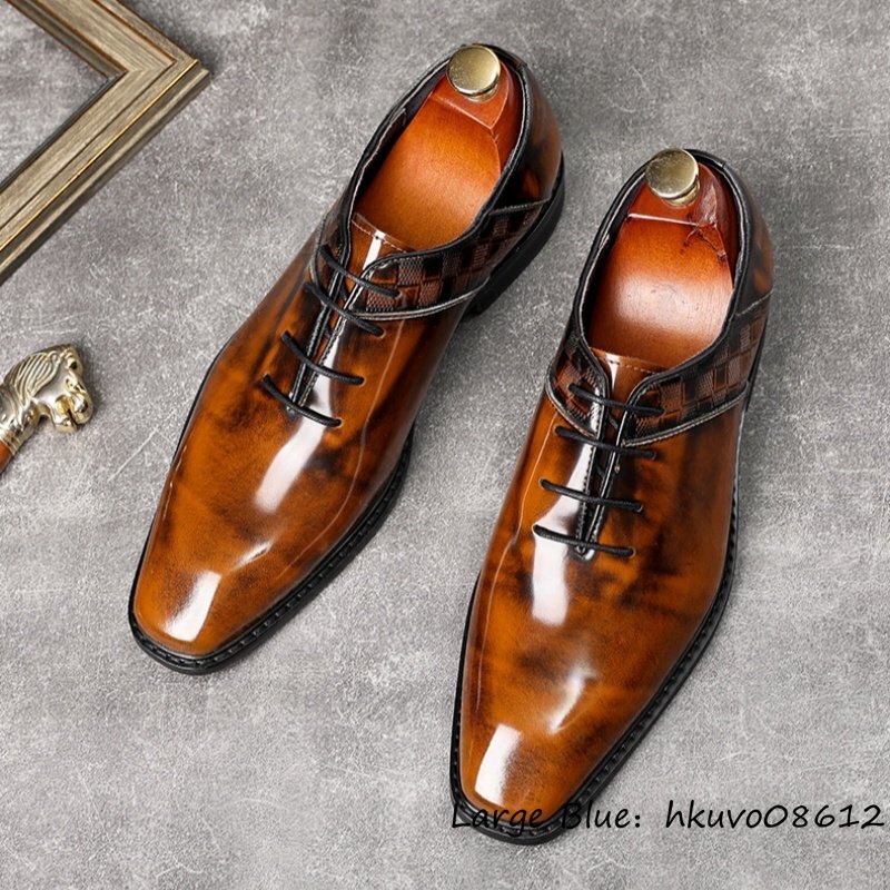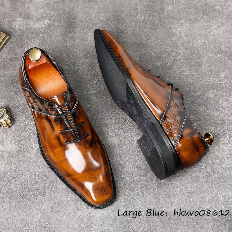 定価11万超★超希少 ビジネスシューズ 本革 レザーシューズ 職人手塗仕上げ 新品 チェック柄 牛革 紳士靴 革靴 フォーマル ブラウン 24.5cm