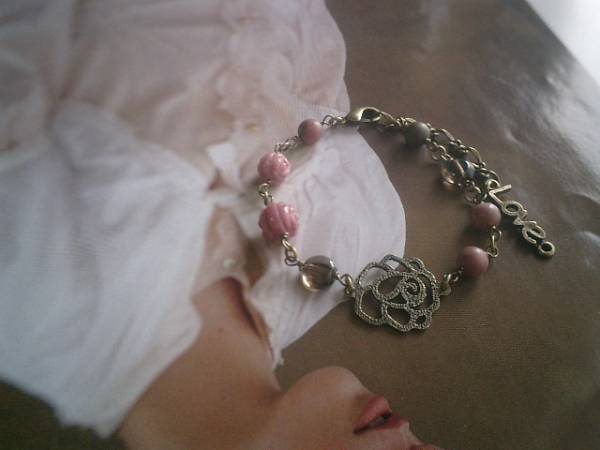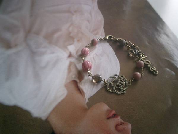 やさしい春に・・シリーズです♪大人色の薔薇を集めて・・シックなロードナイトのブレスレットです♪6ミリの丸玉、8ミリ、10ミリの薔薇彫りのロードナイトにスモーキークォーツの8ミリのコインや薔薇の透かしチャームを合わせて甘すぎない大人のロマンチックしています♪長さは全長23センチ位で調節自由です♪♪お揃いのネックレスも出品しています♪シンプルで飽きのこないいつまでも着けられるデザインを考えて作りました!ハンドメイドをご理解頂いてノークレーム、ノーリターンでお願いします