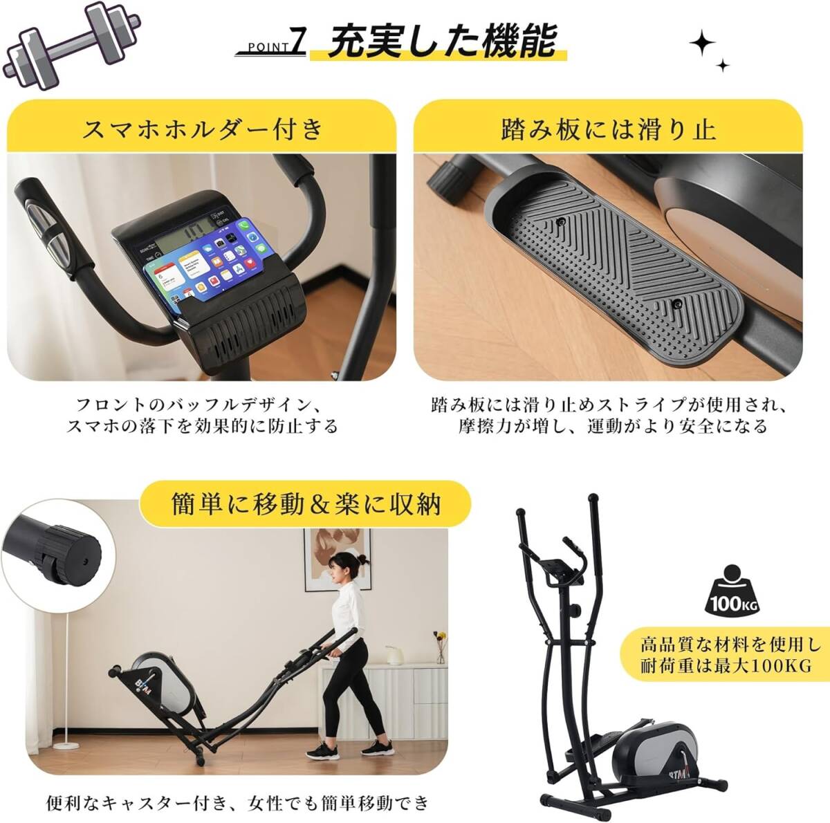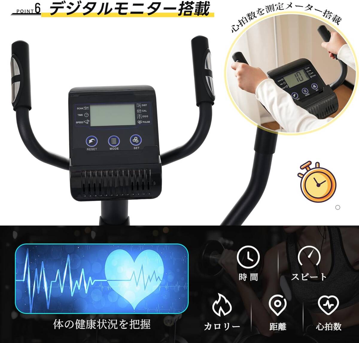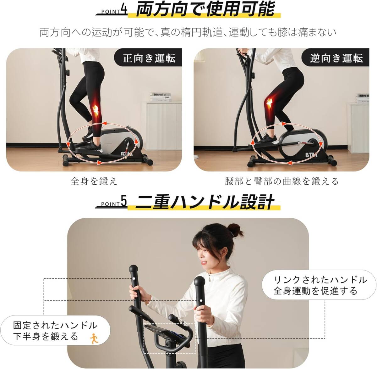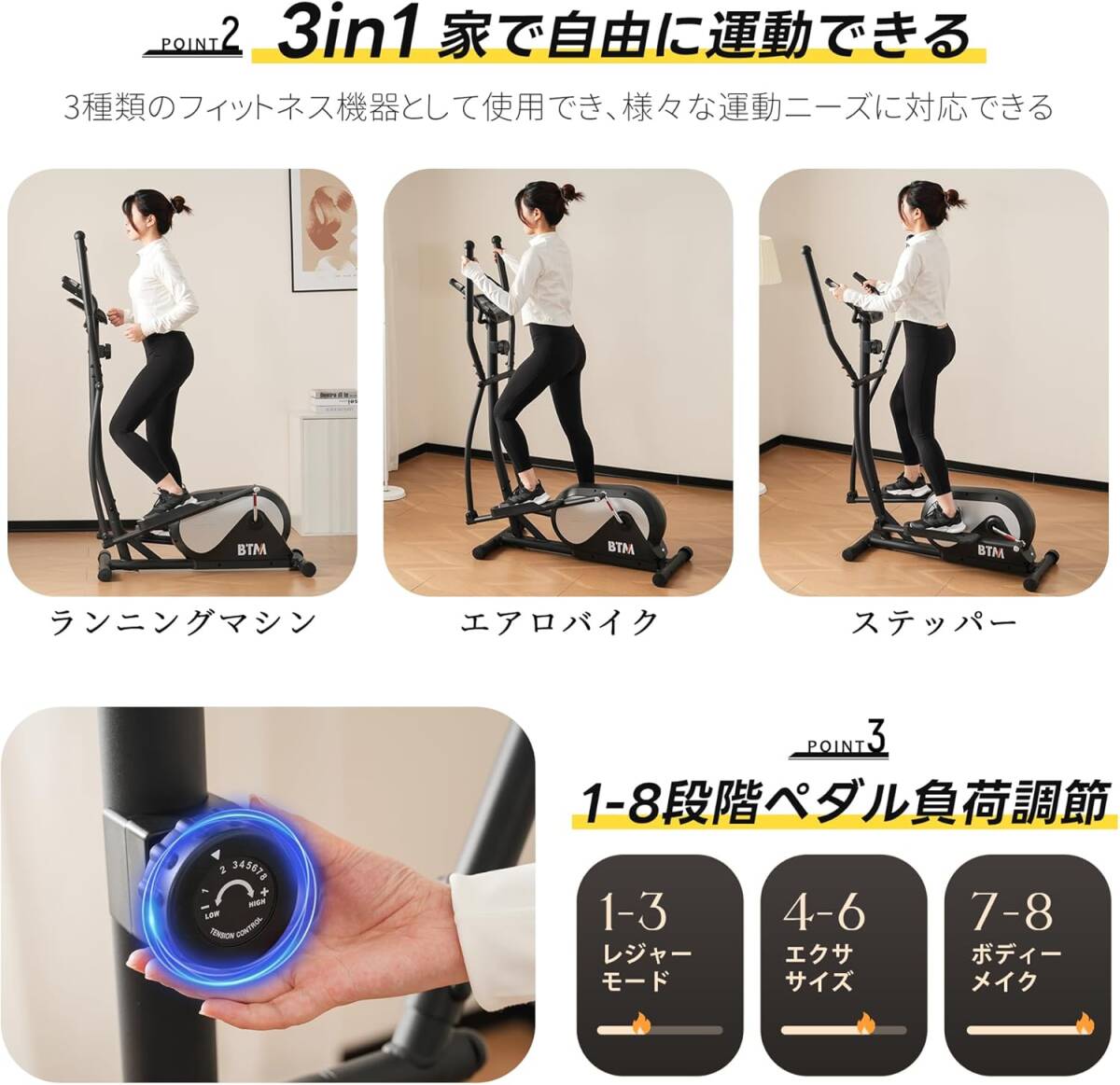 BTM クロストレーナー 家庭用 電源不要 8段階負荷調節 トレックトレーナー 室内フィットネス 静音 デジタルモニター