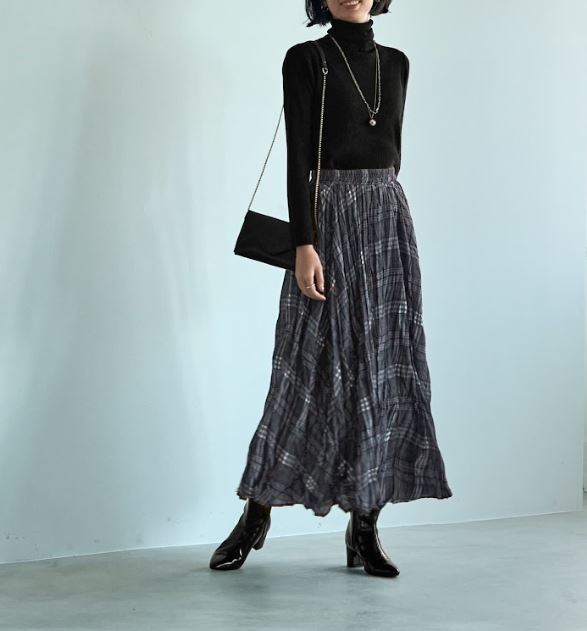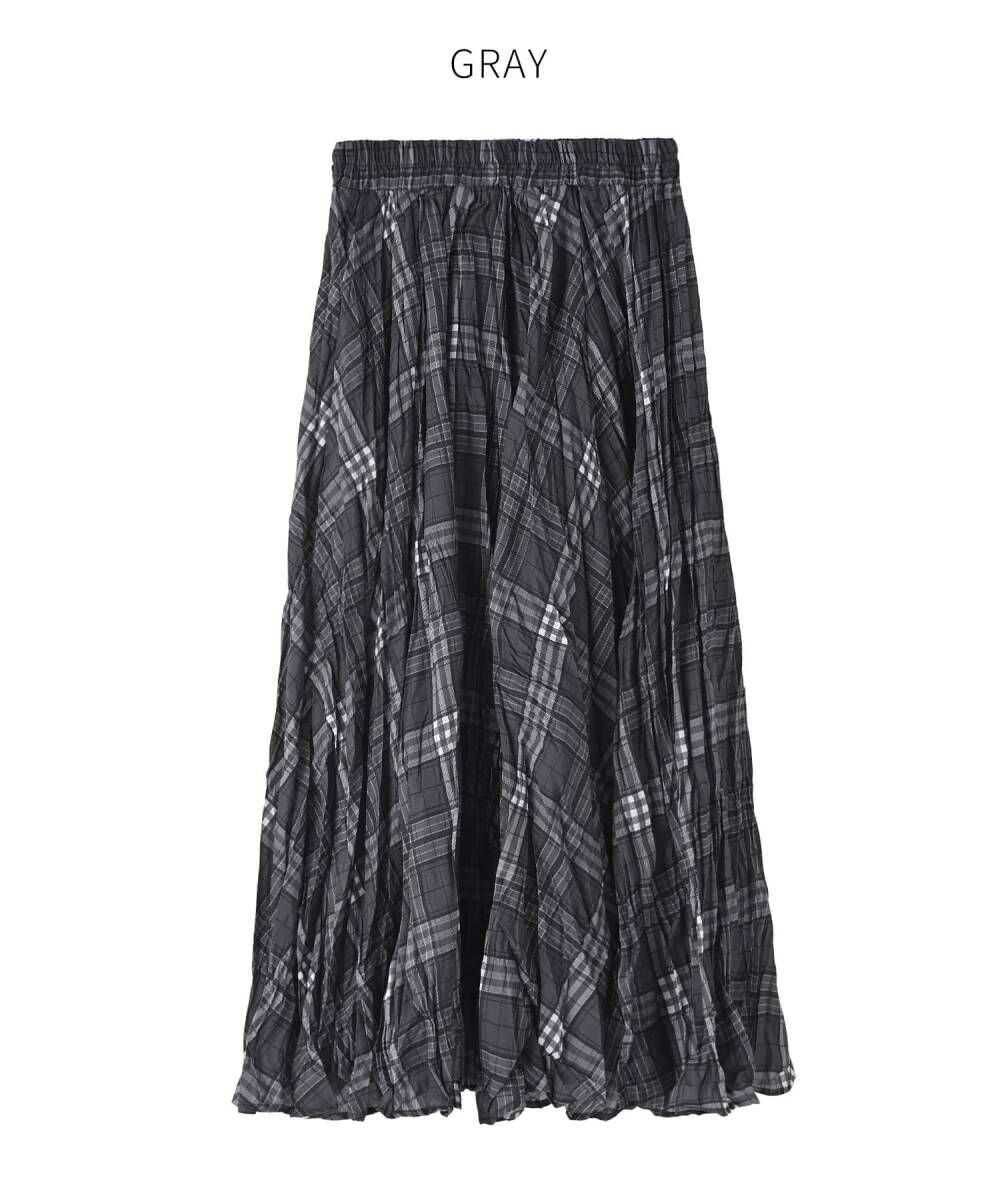 どこか野暮ったくなりがちな点が心配なチェック柄スカートですが、シワ加工(クリンクル加工)と素材の雰囲気で、不安要素の無いこなれた印象を実現。チェック柄に苦手意識のある方でも『これなら挑戦できそう!』というヴィジュアルと価格を備えた一枚になっています。
