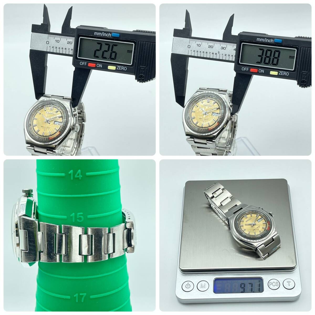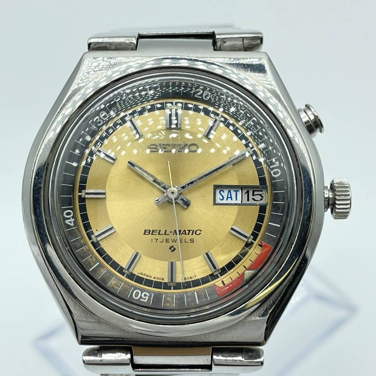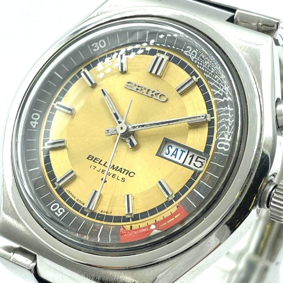 商品名 ・腕時計 SEIKO セイコー BELL-MATIC 4006-6040 自動巻き メンズ ブランド ・SEIKO 付属品 ・ サイズ ケース幅:約38.8㎜(リューズ含まない) ラグ幅:約22.6㎜ 重量:約97.1g ※若干の誤差がある場合がございます。 状態について ・ランク →【B】 キズ・汚れなど、使用感が見受けられますが、 中古品としては比較的良好な状態です。 ・コメント →針の稼働は確認できましたが、出品時に振ったり巻いたりして針が動いた状態であり長時間の稼働は行っておりません。 →全体的に小キズや汚れがあります。 →画像の一部にモザイクの加工がしてあります。 →状態は画像にてご確認ください。 ───────────────[ 状態ランク表 ]──────────────── 【N】 新品・未使用品の新古品です。 【S】 キズ・汚れがほとんど見受けられず、非常に状態の良い商品です。 【A】 わずかにキズ・汚れがありますが、全体的に状態の良い商品です。 【B】 キズ・汚れなど、使用感が見受けられますが、 中古品としては比較的良好な状態です。 【C】 キズ・汚れ・型崩れなどの目立つ使用感がありますが、ご使用には問題のない商品です。 【D】 通電の確認はできておりますが、稼働や動作の確認は行っておりません。 【E】 破損や欠損などが見受けられる商品ですが、素材やパーツとしての価値があり、リメイクや部品取りにおすすめの商品です。 ※ランクは社内基準となりますので、参考としてご参照ください。 ──────────────────────────────────────── 送付方法 ・ゆうパック(着払い) 60サイズ ※千葉市美浜区からの発送となります。 ※出品時に商品を梱包しているため、「同梱不可」となります。 ※こちらの商品は「発送のみ」の対応となります。 防犯上の観点から、「引取り限定」「家財便または引取り」の商品以外は直接の引取りはお断りさせていただいております。 | |||