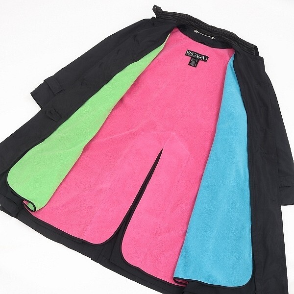【HA572】◆ESCADA エスカーダ カラフルライナー付 ナイロン ステンカラー コート 黒 ブラック 38 | |
