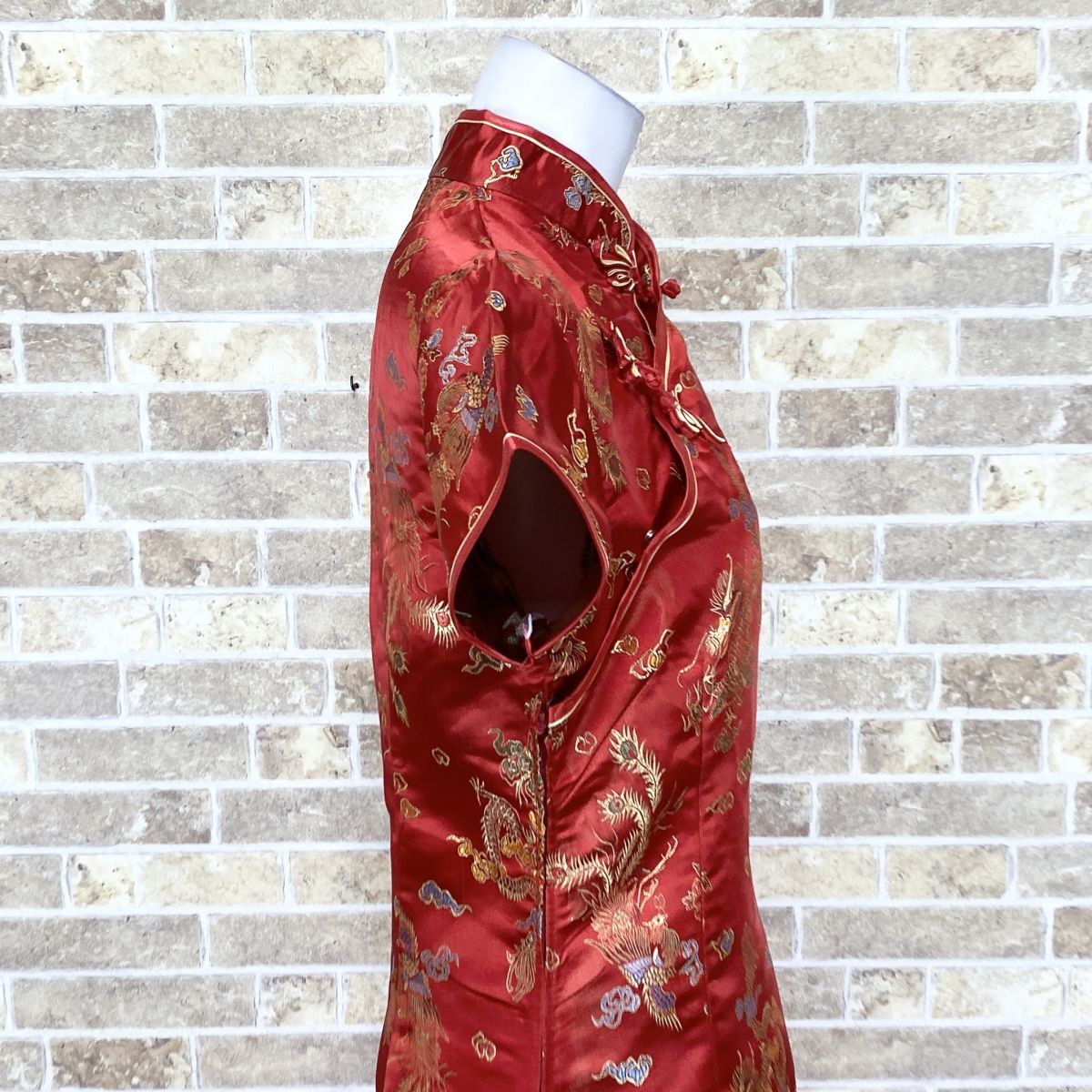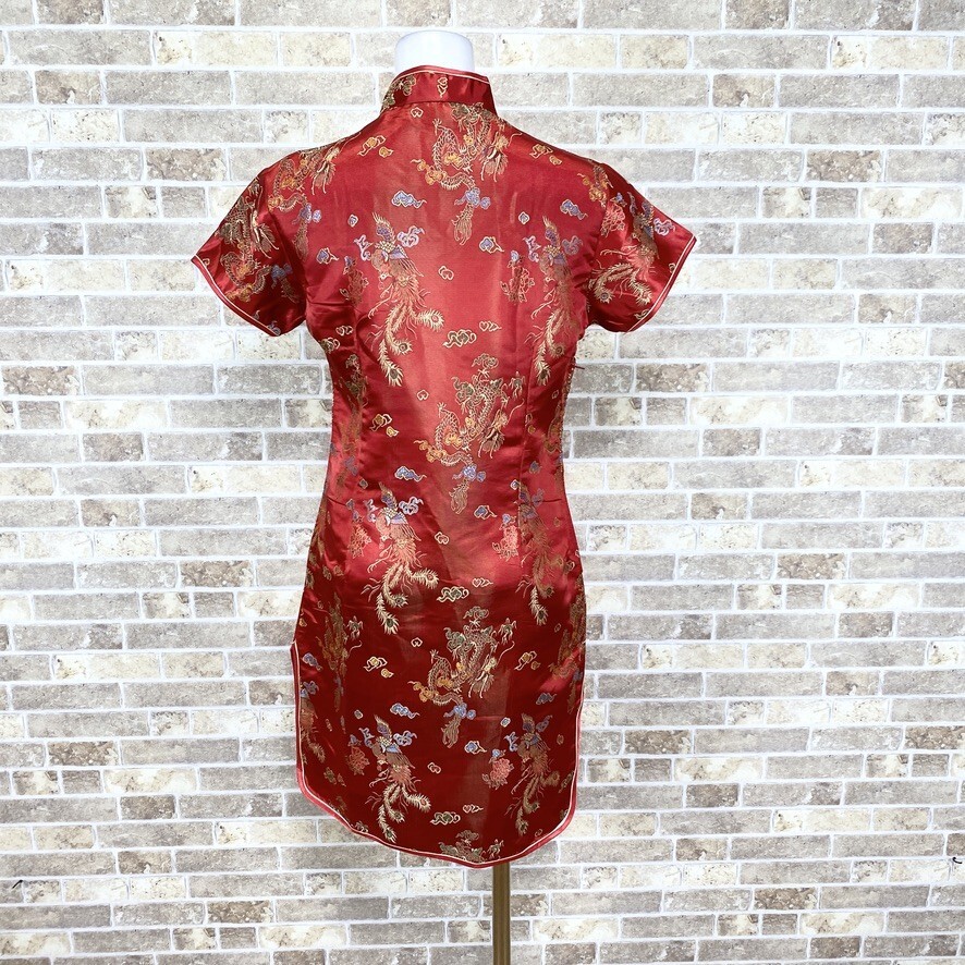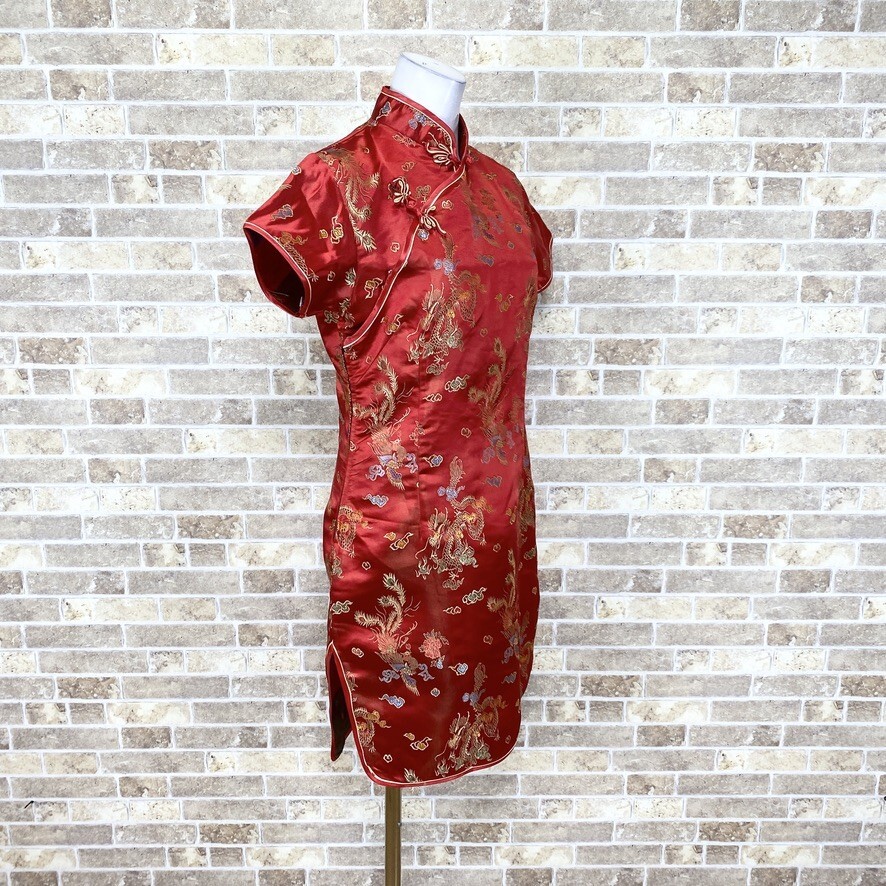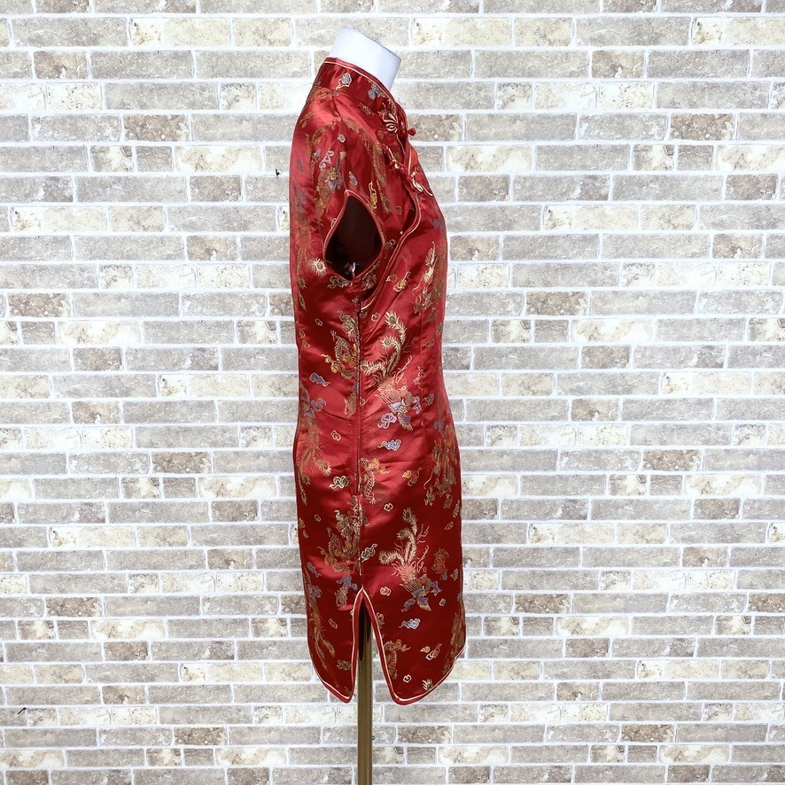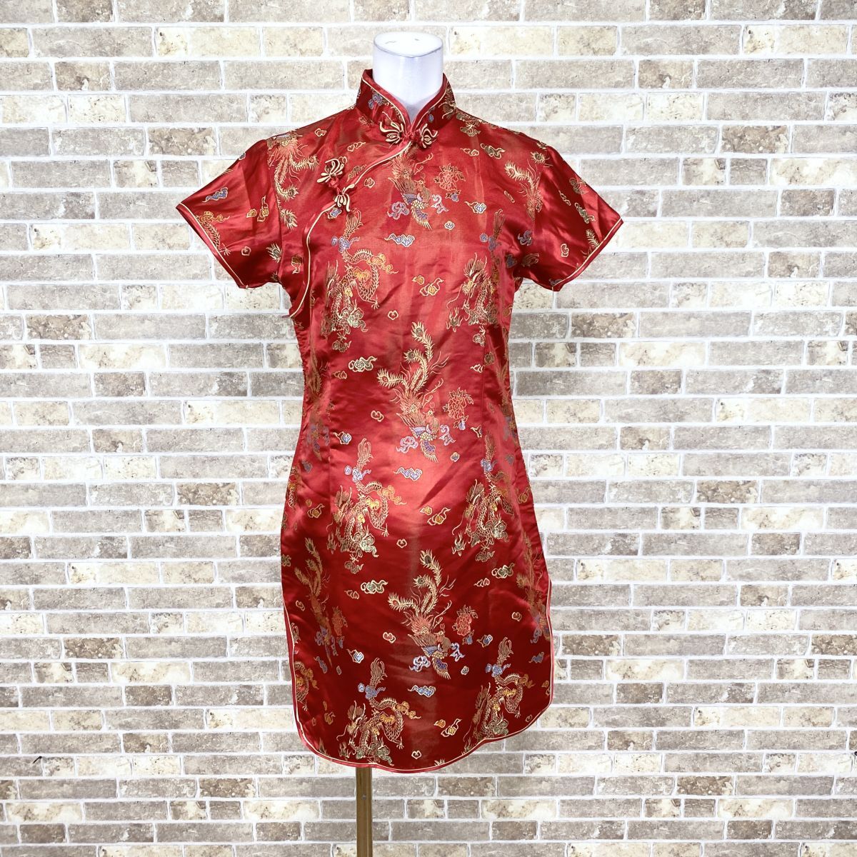 1円チャイナドレス【ネコポス可】 小芳州 999 ワンピース L 赤柄 カラードレス キャバドレ イベント 中古14839