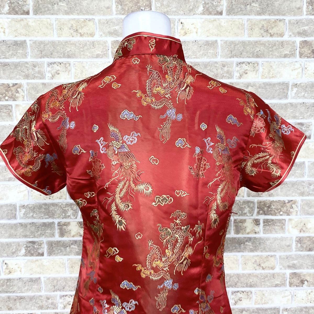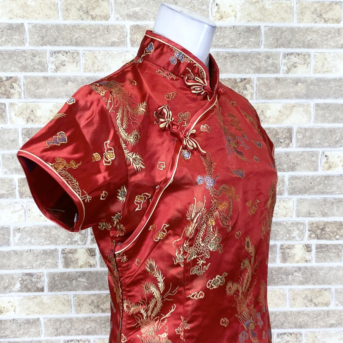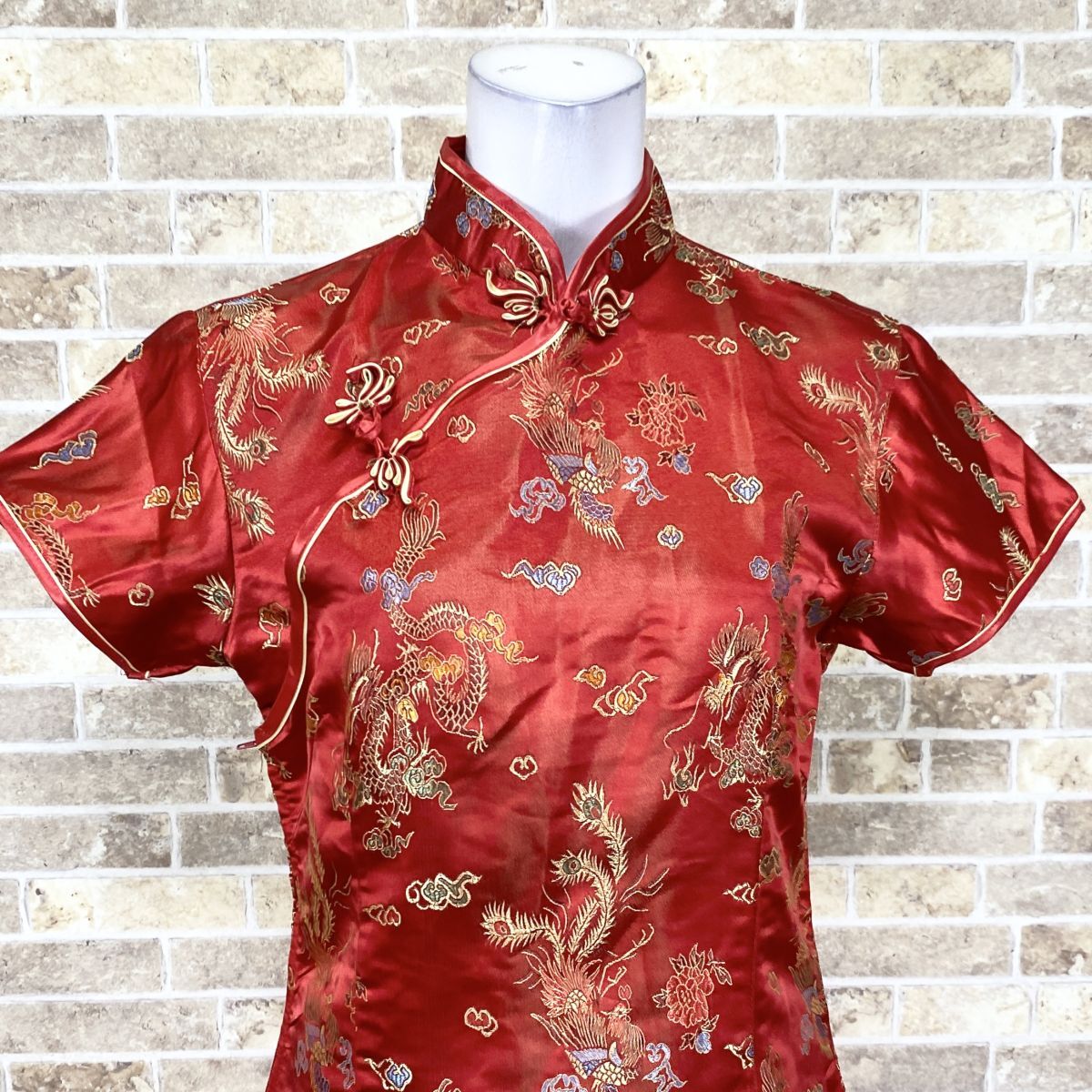 1円チャイナドレス【ネコポス可】 小芳州 999 ワンピース L 赤柄 カラードレス キャバドレ イベント 中古14839