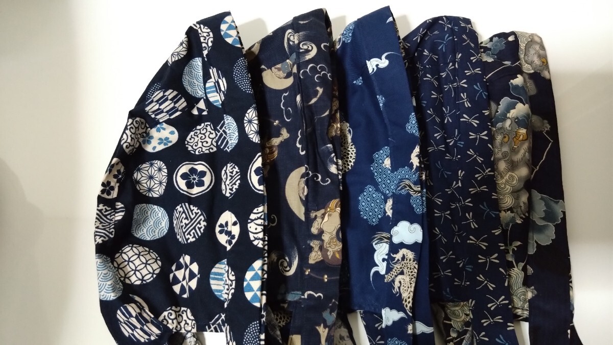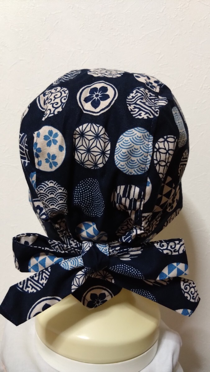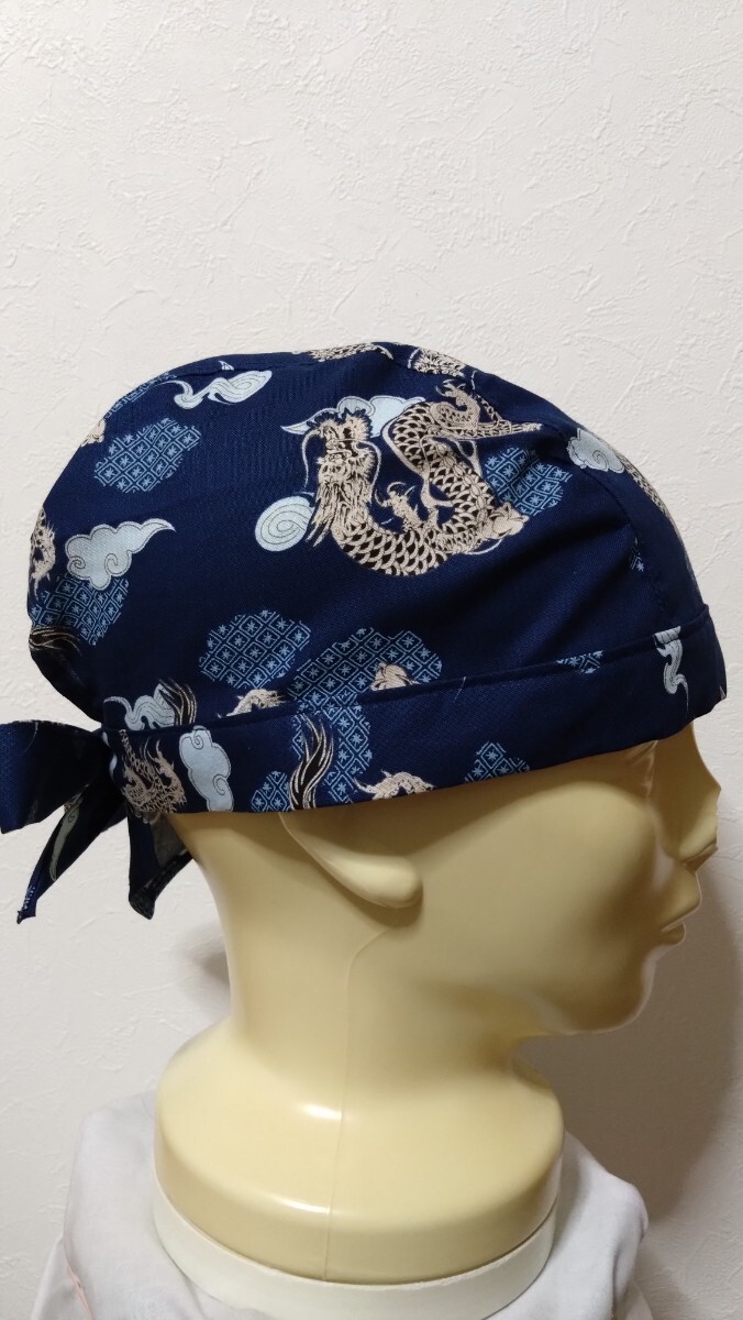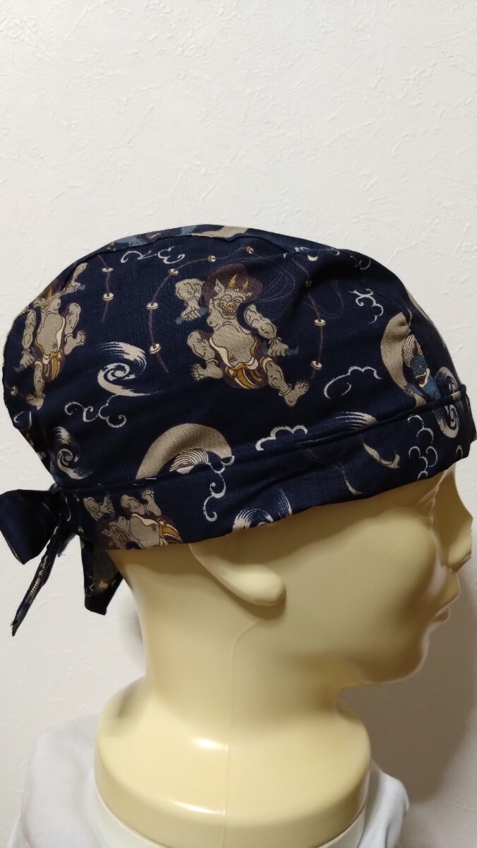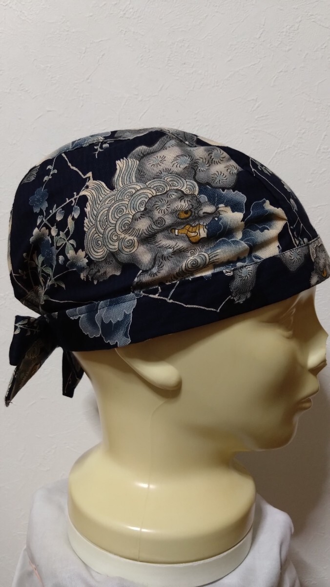 短★福袋 バンダナキャップ 5枚セット ハンドメイド 和柄 獅子 とんぼ 竜と雲 風神雷神 紋柄 紺
