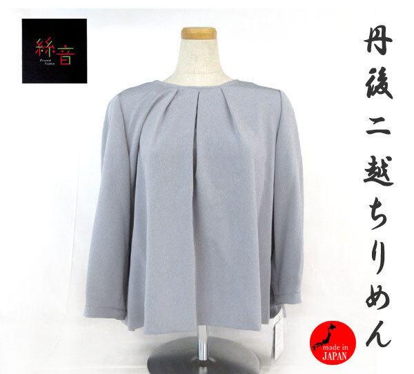 ▼レディース 絲音 丹後二越ちりめん 7分袖カットソー グレー L | |