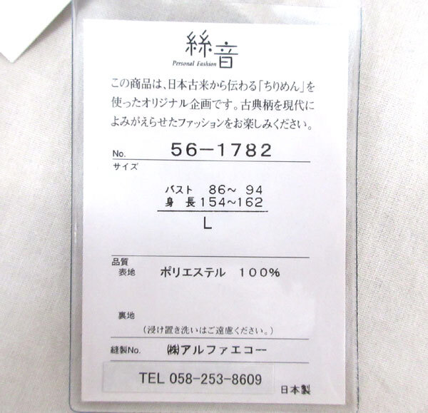 内 容 | ■レディース 絲音 丹後二越ちりめん 7分袖カットソー ■サイズ:L(バスト86-94cm 身長154-162cm 身丈約58cm) ■カラー:グレー ■日本製 某有名百貨店の通販で販売されていた商品となります。 |