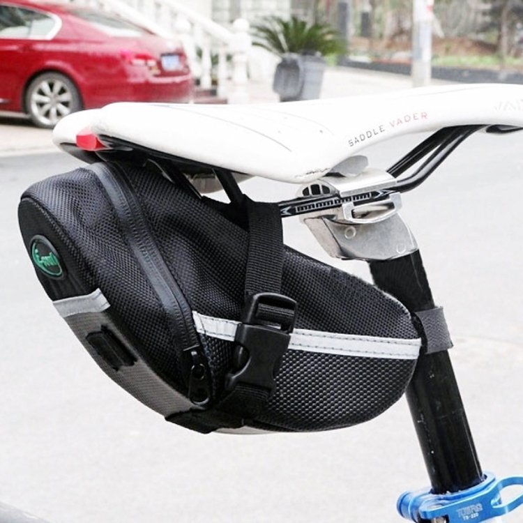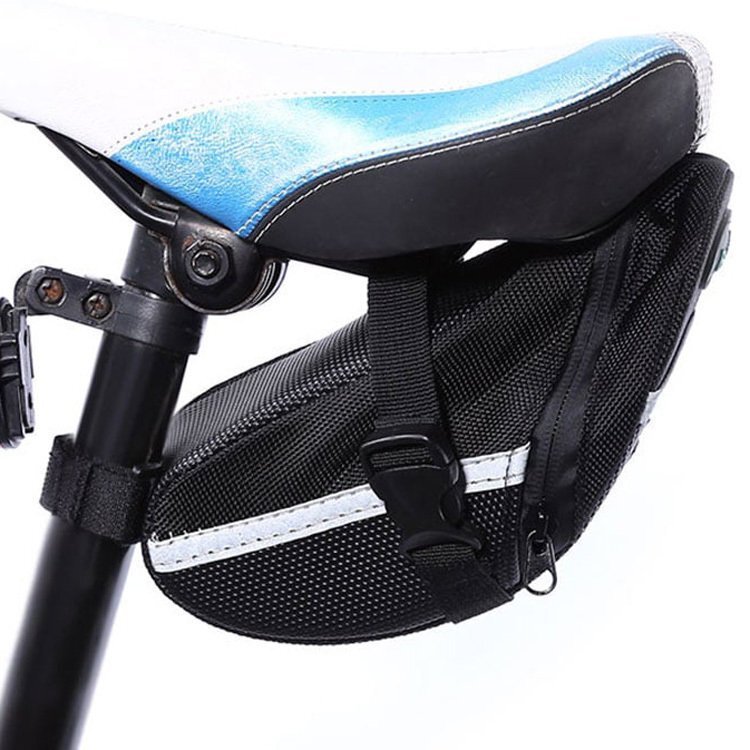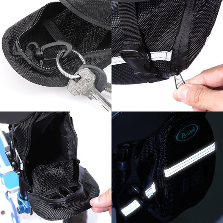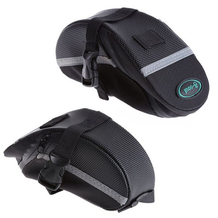 ◆自転車用サドルバッグ ブラック 小型軽量 145g 耐久/対候性抜群 600Dナイロン製 反射テープ付 工具入れ 取付簡単 サイクリング小物収納に便利 防水仕様 BSO1795