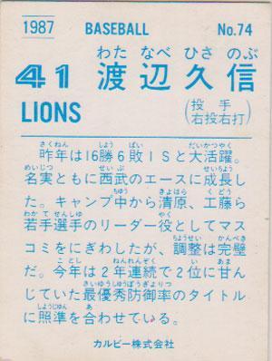★トレカ★1987年カルビー【#074 渡辺久信】★