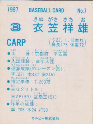 ★トレーディングカード★1987カルビープロ野球チップス【#007 衣笠祥雄】★