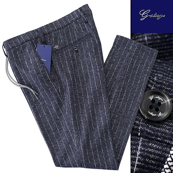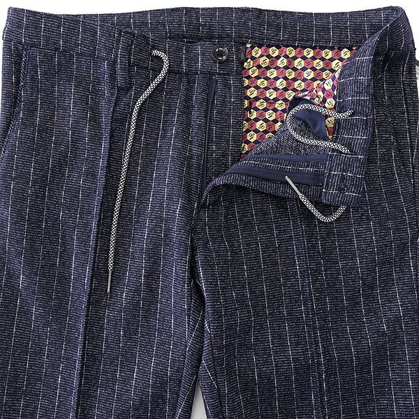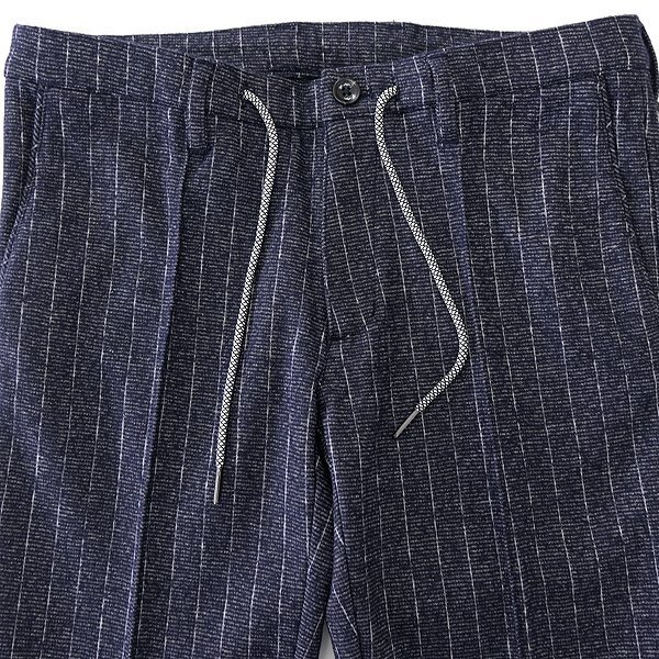 新品 未使用 紙タグあり 46サイズ(Mサイズ相当・画像は別サイズで撮影) ウエスト82 ※商品に記載されたサイズ・寸法です※ ウエスト実寸82~88cm(内回り1周・ゴム入り) 股上22cm 股下74cm 裾幅16.5cm 腿幅25.5cm(股下10cm部分) ※伸縮性がある素材のため多少誤差が生じることがあります※ 本体:ポリエステル56% 毛30% 綿13% レーヨン1% ネイビー×ホワイト |