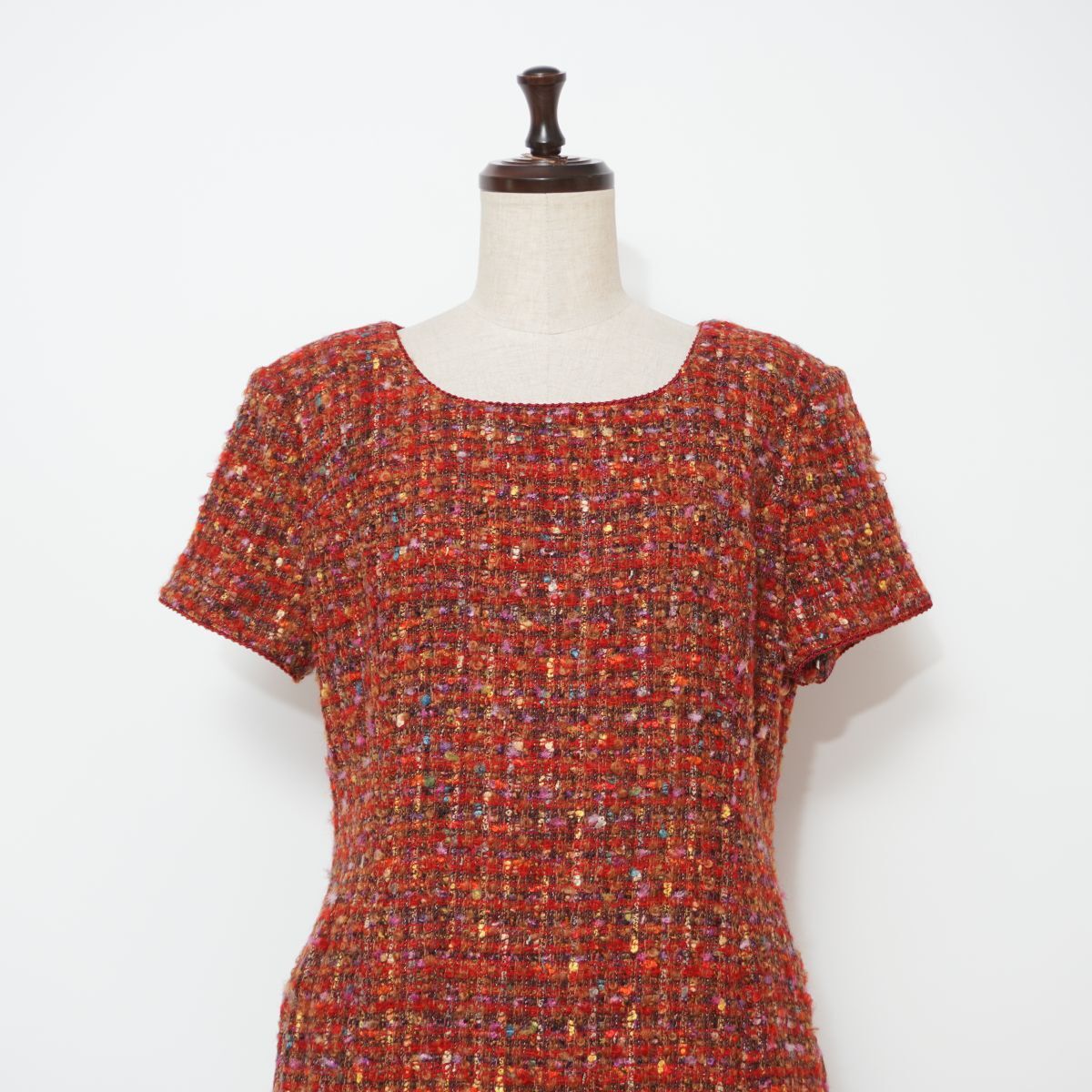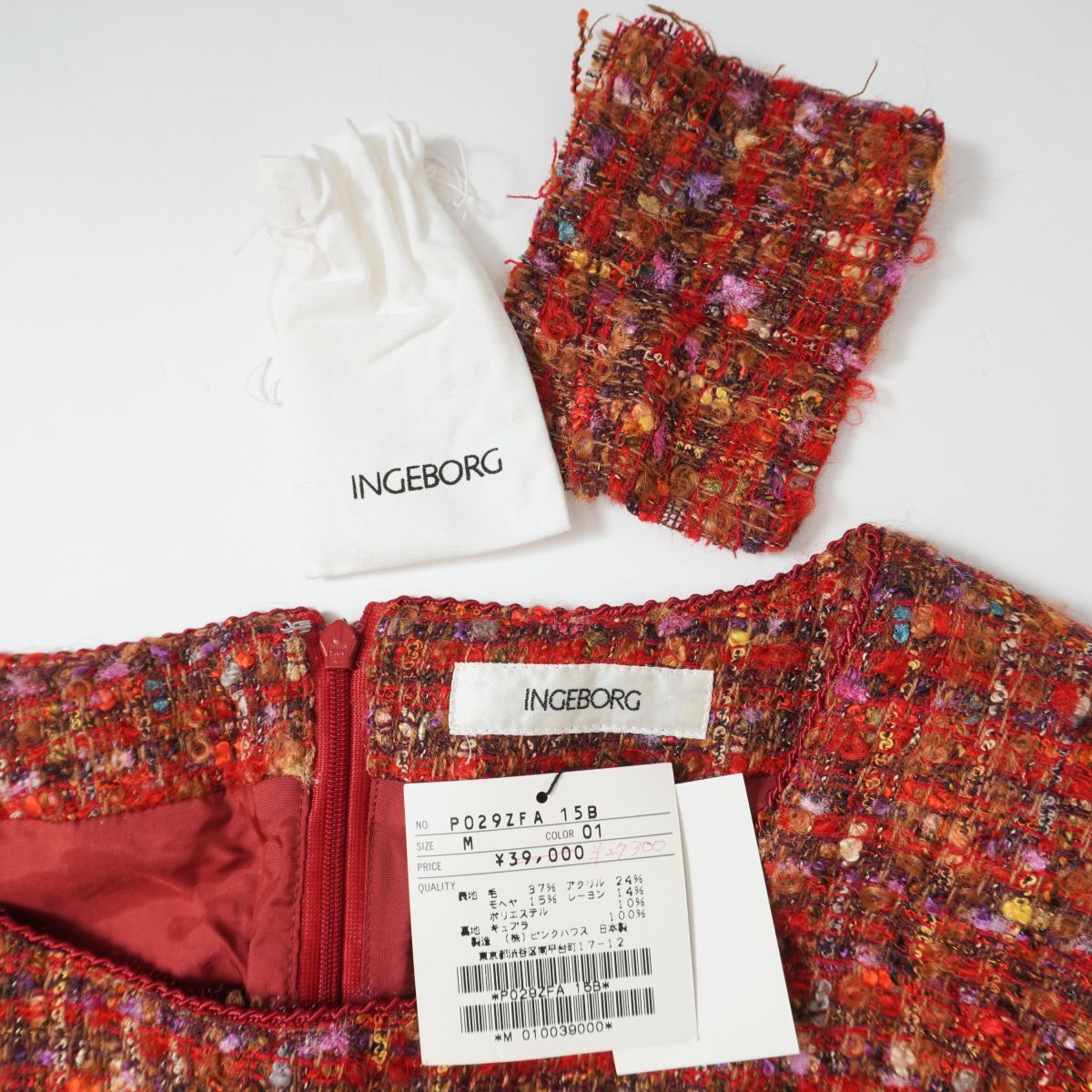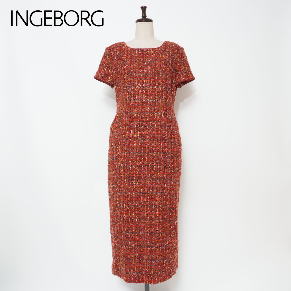 新品未使用 INGEBORG インゲボルグ ピンクハウス ツイードワンピース ロング丈 裏地付き レディース レッド 赤 サイズM*GD867