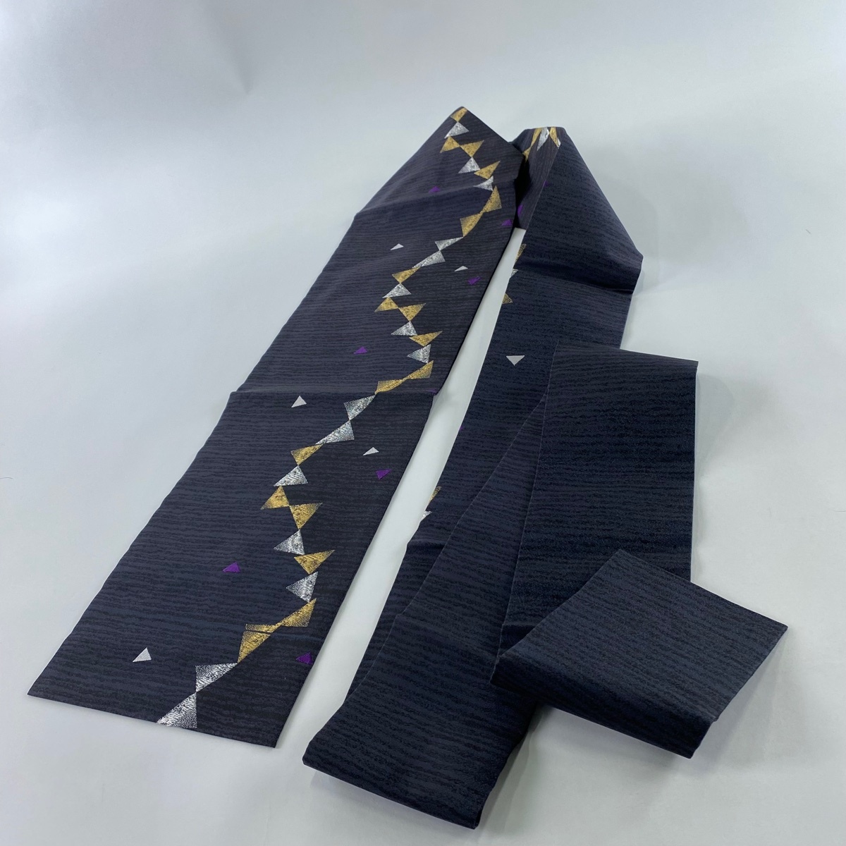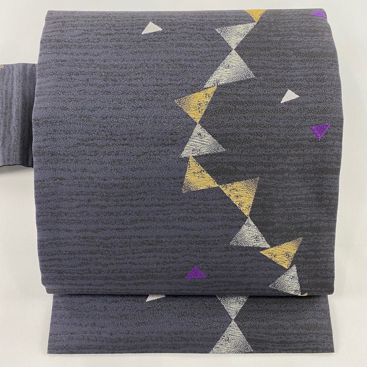| 名古屋帯 美品 秀品 鈴乃屋 三角 幾何学 金銀糸 灰紫 正絹 【中古】 |