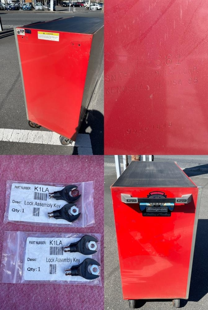 b ■商品状態 鍵2本新しいものに交換済み 【状態】 ※鍵2箇所は本来の付属では有りません。新しいスナップオン純正の鍵に交換されています。 ※全体に透明の保護カバーが被せられていますが、所々傷やカバー破れが有ります。 ※目立った凹み等はございません。 ※引出しの出し入れの動作良好です。歪みは有りません。 中古品の為、傷や汚れございます。 実際の作業手順に沿った動作確認は環境がない為行っておりませんのでご了承下さい。 店頭買取後、店頭にて展示販売も同時にしておりますため、傷汚れ等が増えている場合も御座います。 ■付属品 写真が全てになります ■管理番号 240009082956 |