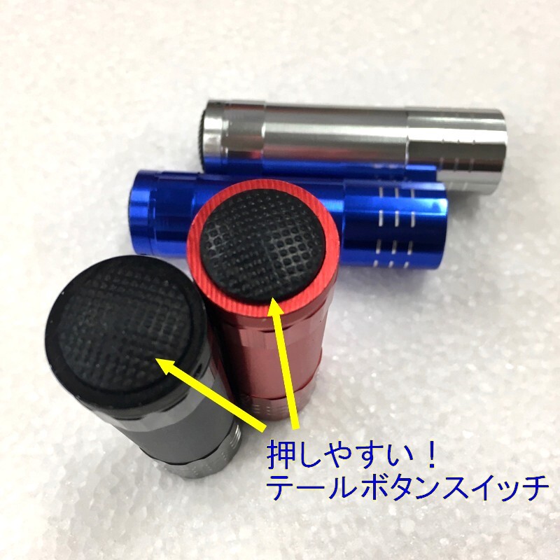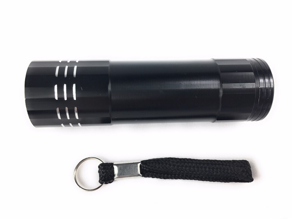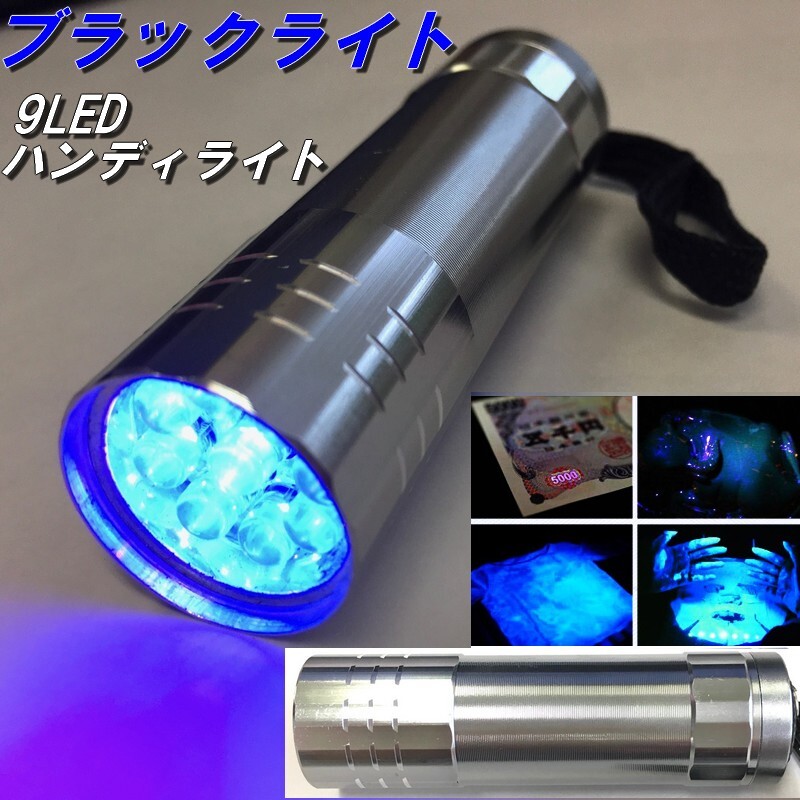 9LED ハンディ ブラックライト 【シルバー】 UVライト ジェルネイルライト 紫外線ライト 懐中電灯 お札 判定 鑑定 BLACKLIGHT 防水