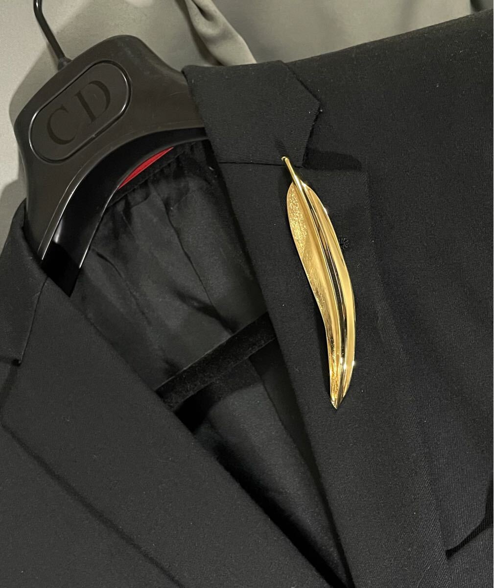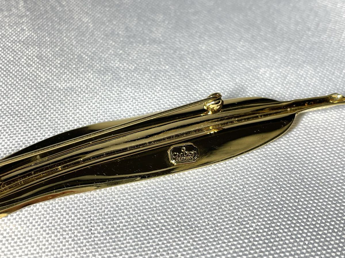 即決美品 Christian Dior クリスチャンディオール フェザーデザイン ラージサイズ アンティークブローチ ゴールド ヴィンテージ 男女兼用