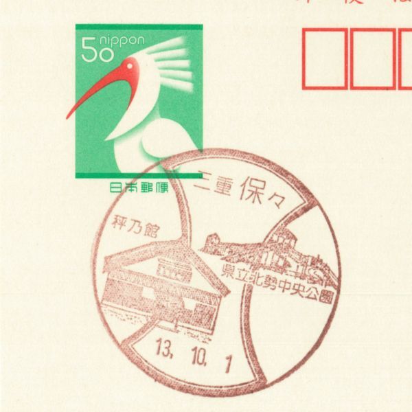 風景印☆初日☆三重・保々・H13.10.1・旧印