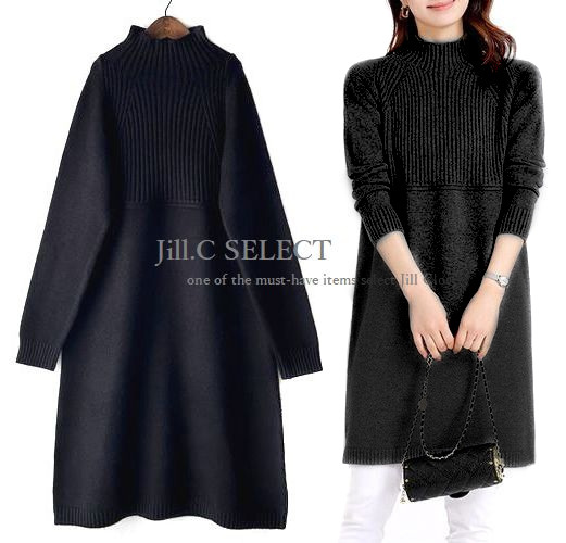 新品/BLACK【送料185円】伸縮◎上質感*もっちりハイゲージニット*リブ切り替えdesign*プルオーバー*チュニック*ワンピース3741.