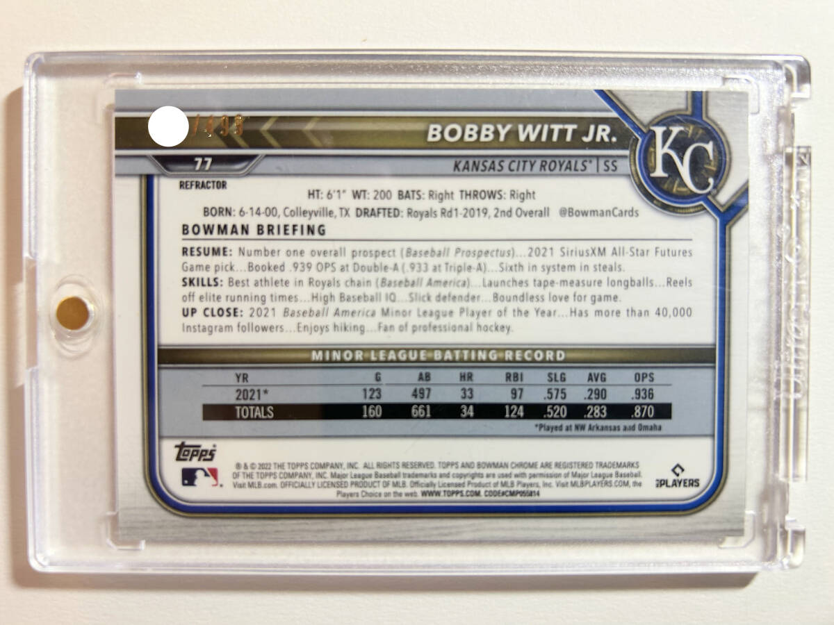 【 Bobby Witt Jr. 499枚限定 ルーキーカード 】2022 Bowman Chrome Refractor Rookie #77 ボビー・ウィット・ジュニア / Royals RC