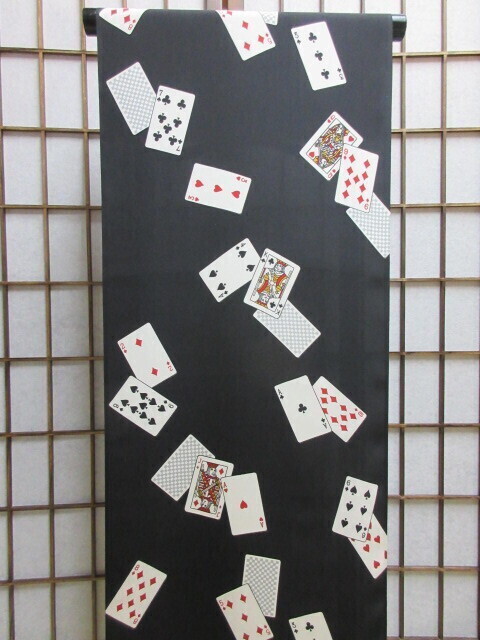 ☆正絹 とてもお洒落な 長襦袢地 黒地 トランプ柄 23702