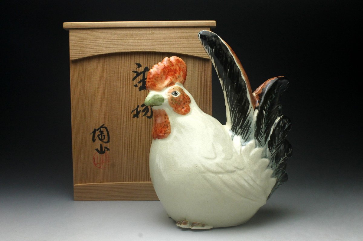 【余韻】 四代 伊東陶山 瑞鶏 置物 共箱 共布 栞 干支 粟田焼 長期保管品<同梱可>