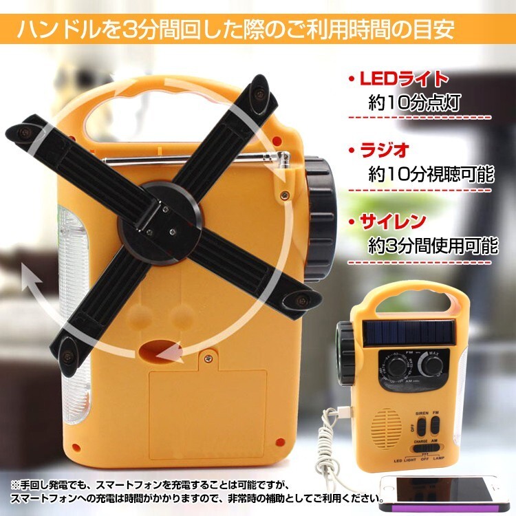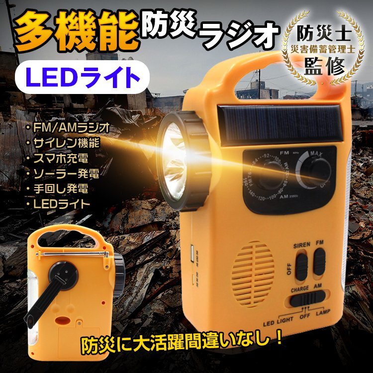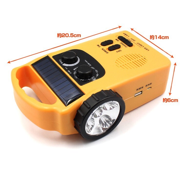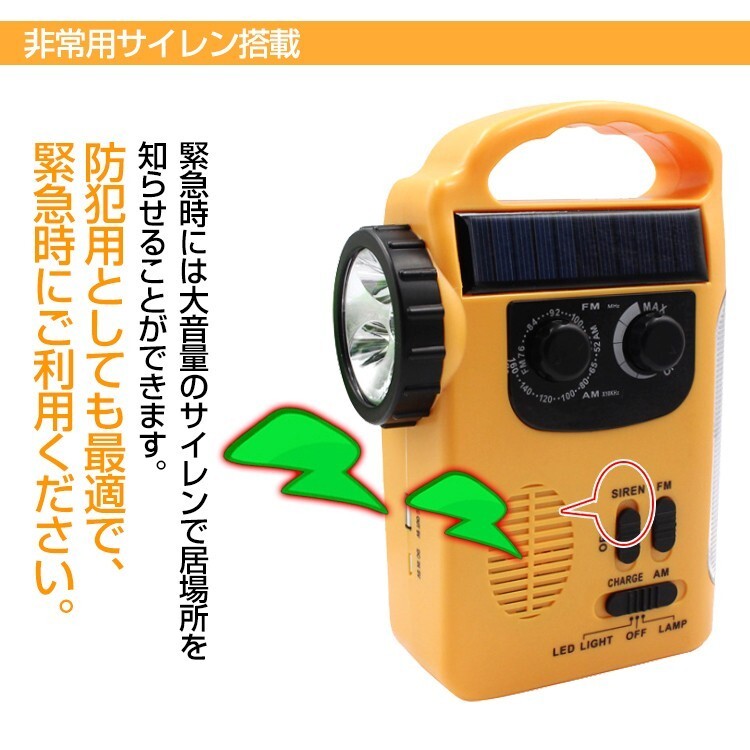 送料無料 多機能 ラジオ 懐中電灯 LEDライト 太陽光 ソーラー充電 手回し 充電 災害 電池対応 防災グッズ サイレン アラーム 照明 ny206
