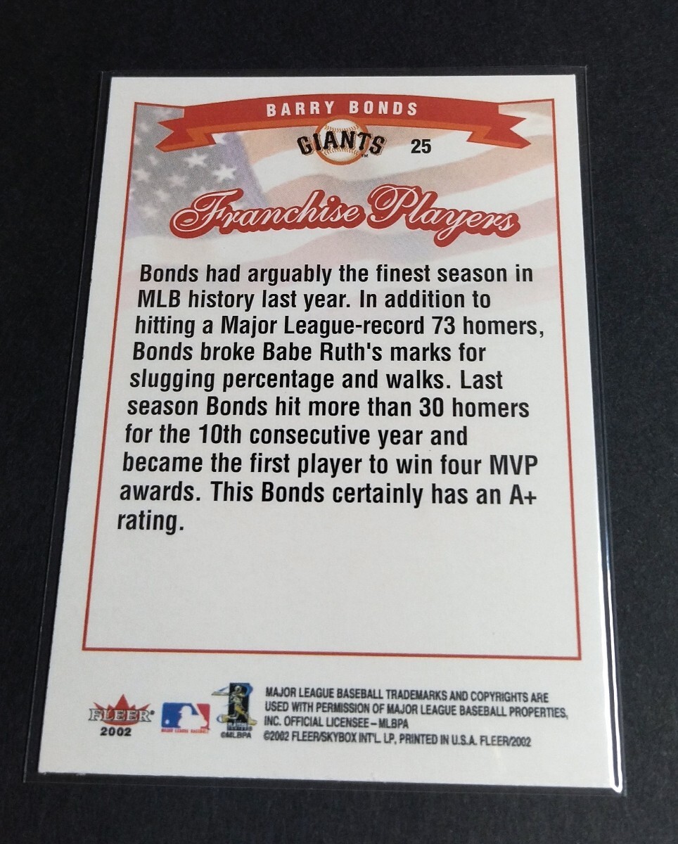 MLB 2002年FLEER バリー・ボンズ(ジャイアンツ) Franchise Players No,25。 Giants BARRY BONDS