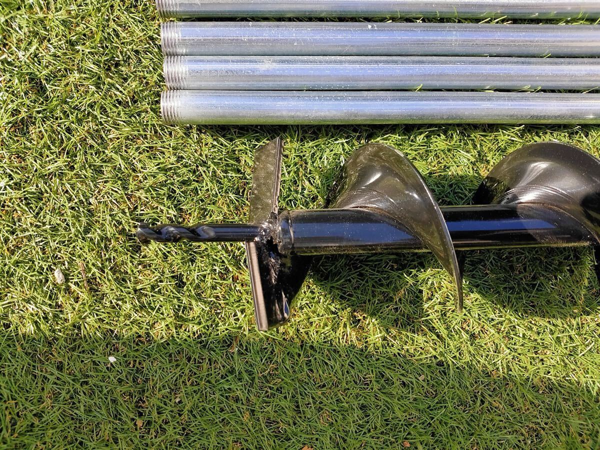 オーガドリルについた土を落とす作業は、延長パイプは外さずに、そのまま長いままで引き揚げれる強度がありますので、作業も簡単です。